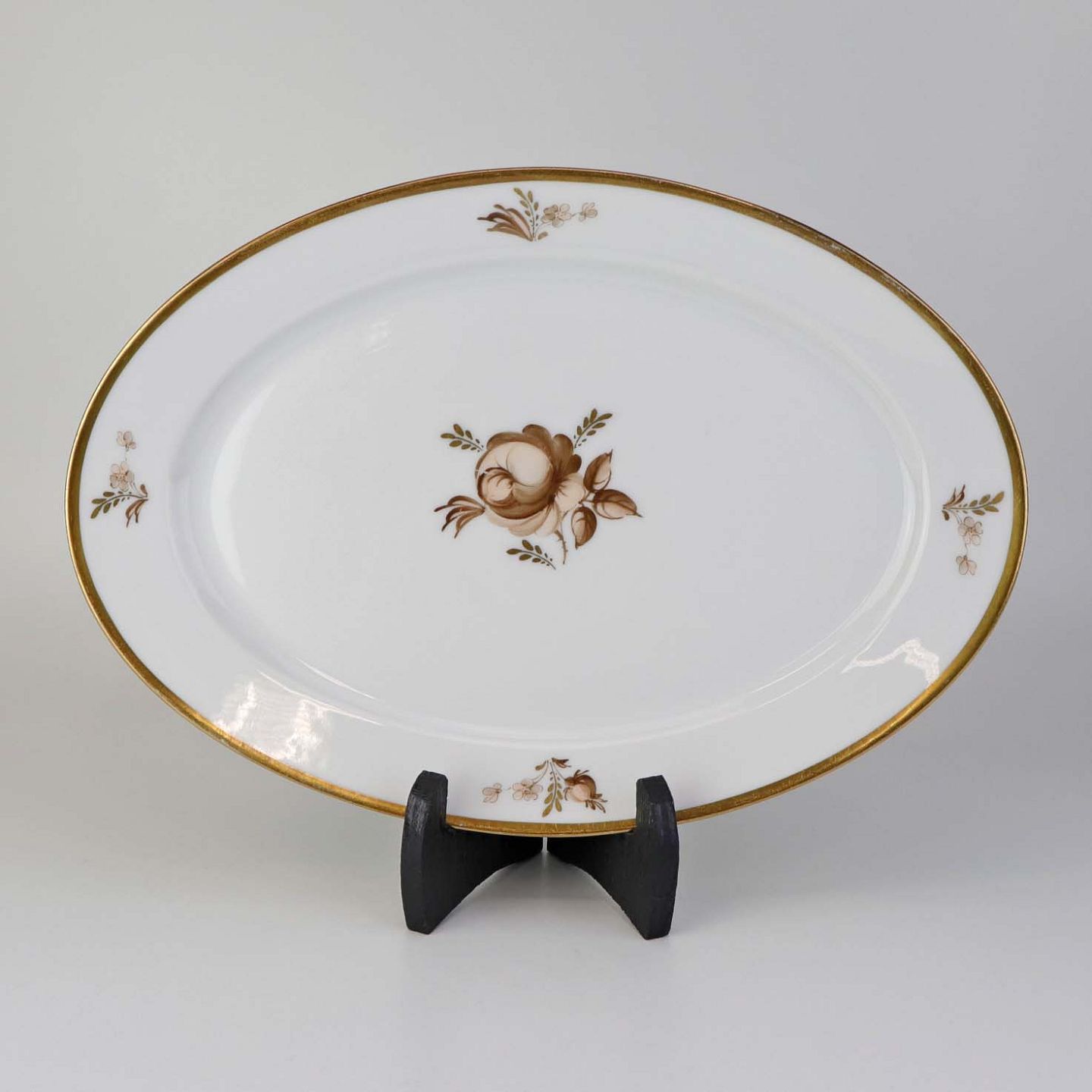 Ovalt serveringsfad i porcelæn fra stellet Brun rose. Nr. 688/9008Producent Royal Copenhagen