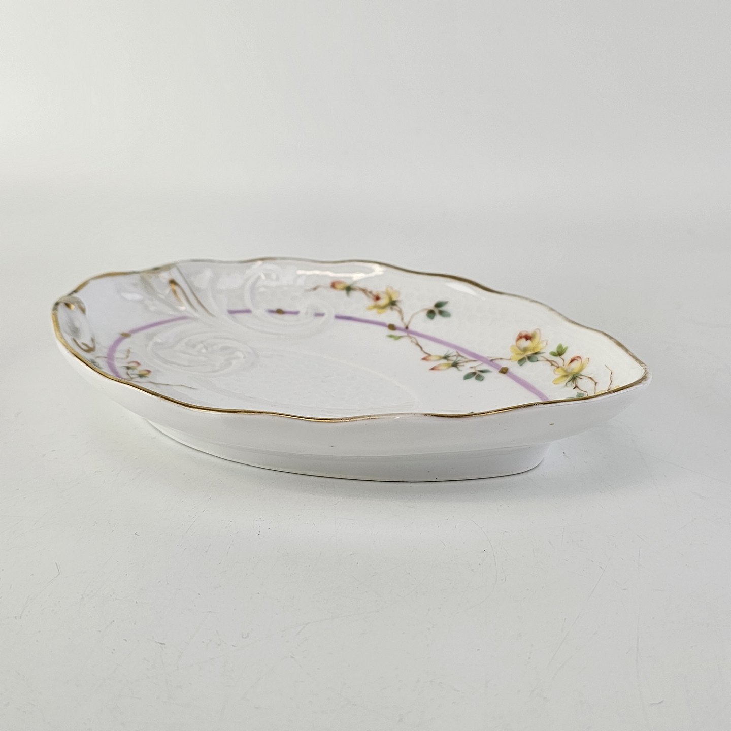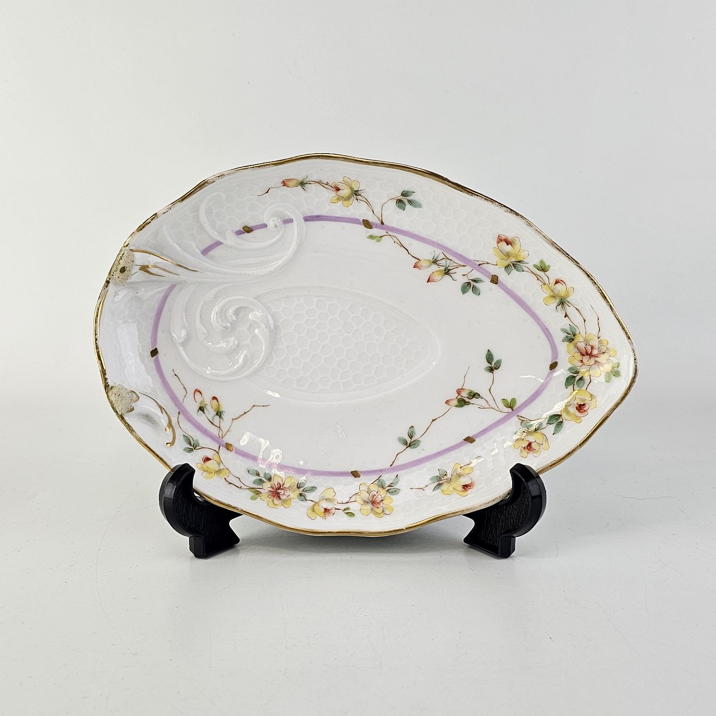 Lille fad i kongeligt porcelæn fra Det hamrede stelFormgiver Arnold Krog, år 1887