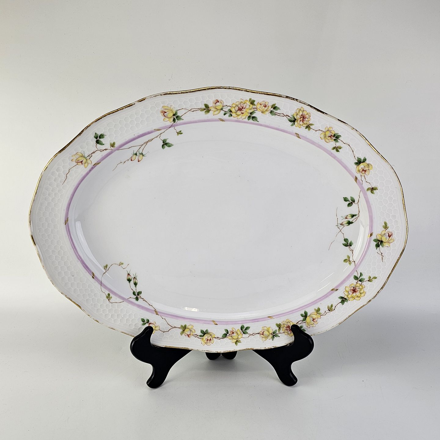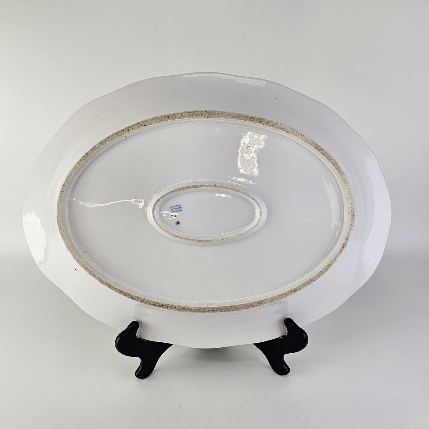 Stort ovalt fad i kongeligt porcelæn fra Det hamrede stelFormgiver Arnold Krog, år 1887