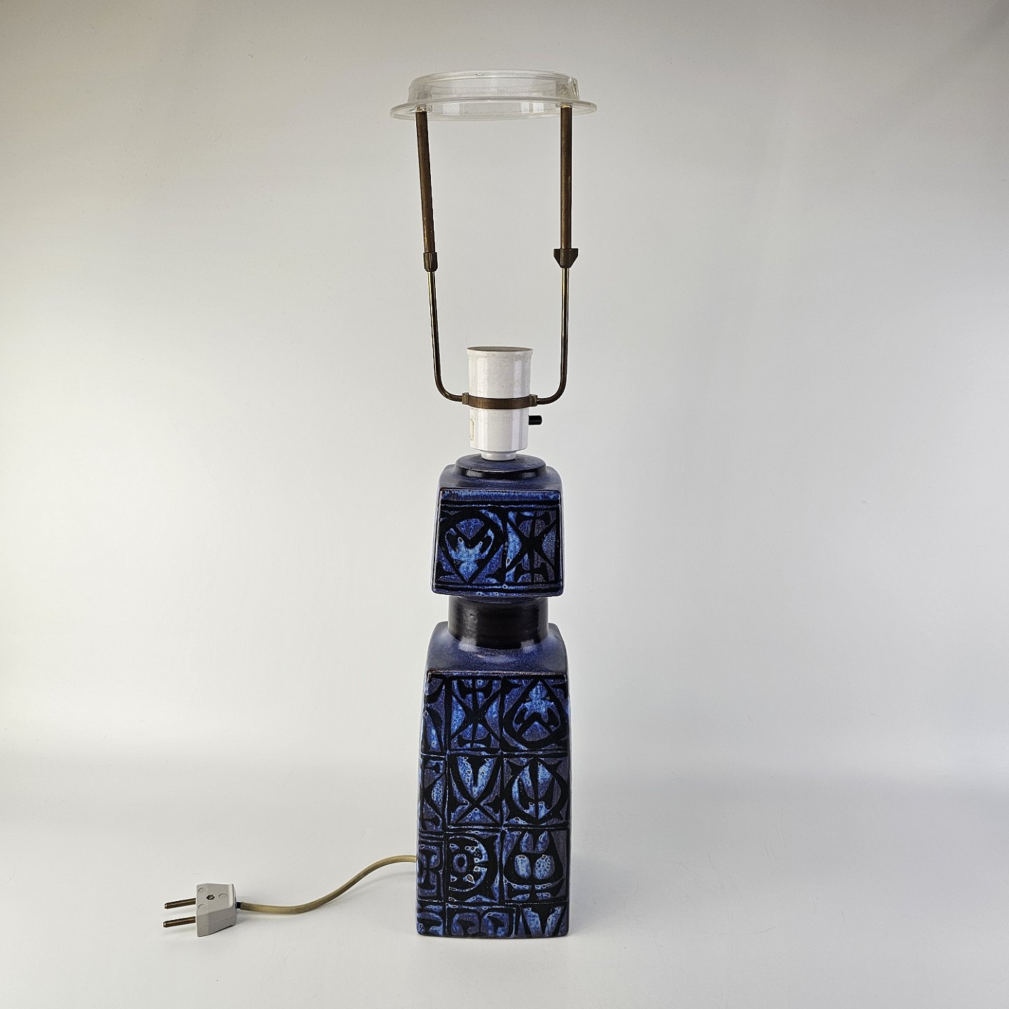 Bordlampe i fajance med abstrakt mønster af firkanter i blå nuancerNr. E 7192