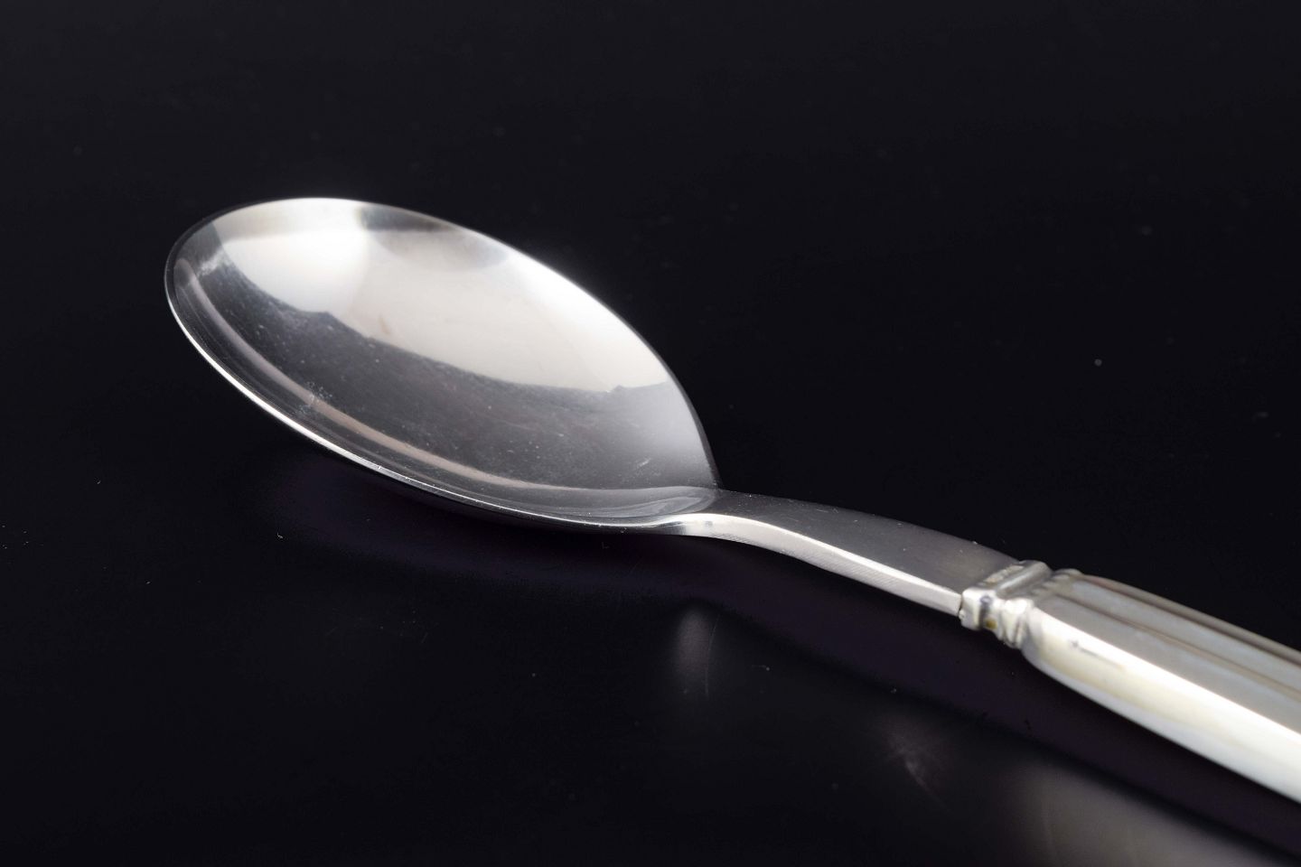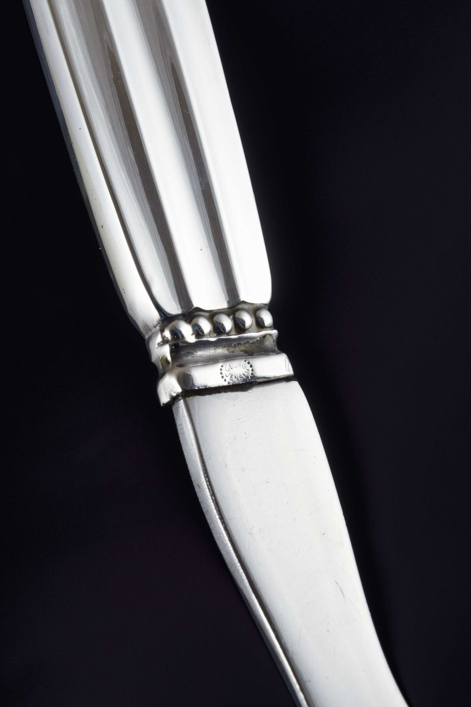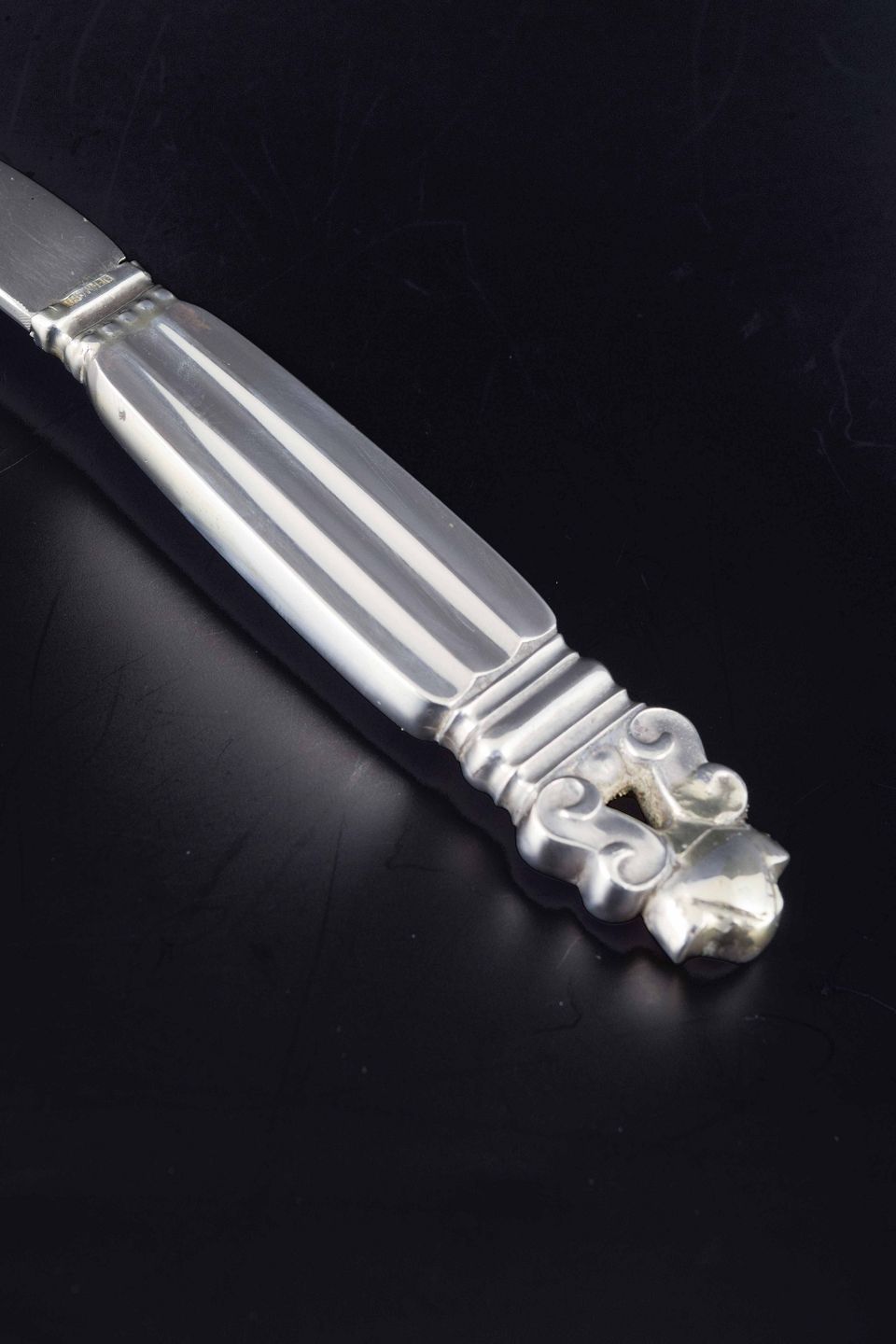 Georg Jensen (1866–1935) founded his silversmith workshop in Copenhagen in 1904. The company quickly gained international recognition for its combination of Scandinavian design aesthetics and exquisite craftsmanship. Among the most famous silver patterns are Beaded (1916), Pyramid (1926), Cactus (1930s), and Acorn (1915), all regarded as classics in Danish design history.