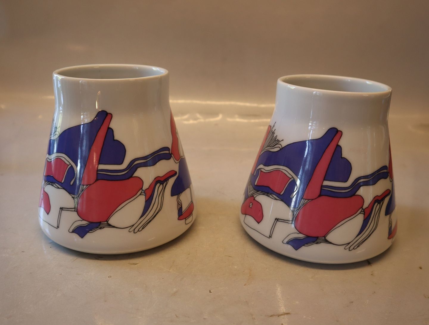 2 pcs in stockB&G 6026-1853 Vase decorated by Steen Lykke Madsen 12.5 x 13 cm Signed Steen Bing and Grondahl Marked with the three Royal Towers of Copenhagen. Bing & Groendahl In mint and nice condition