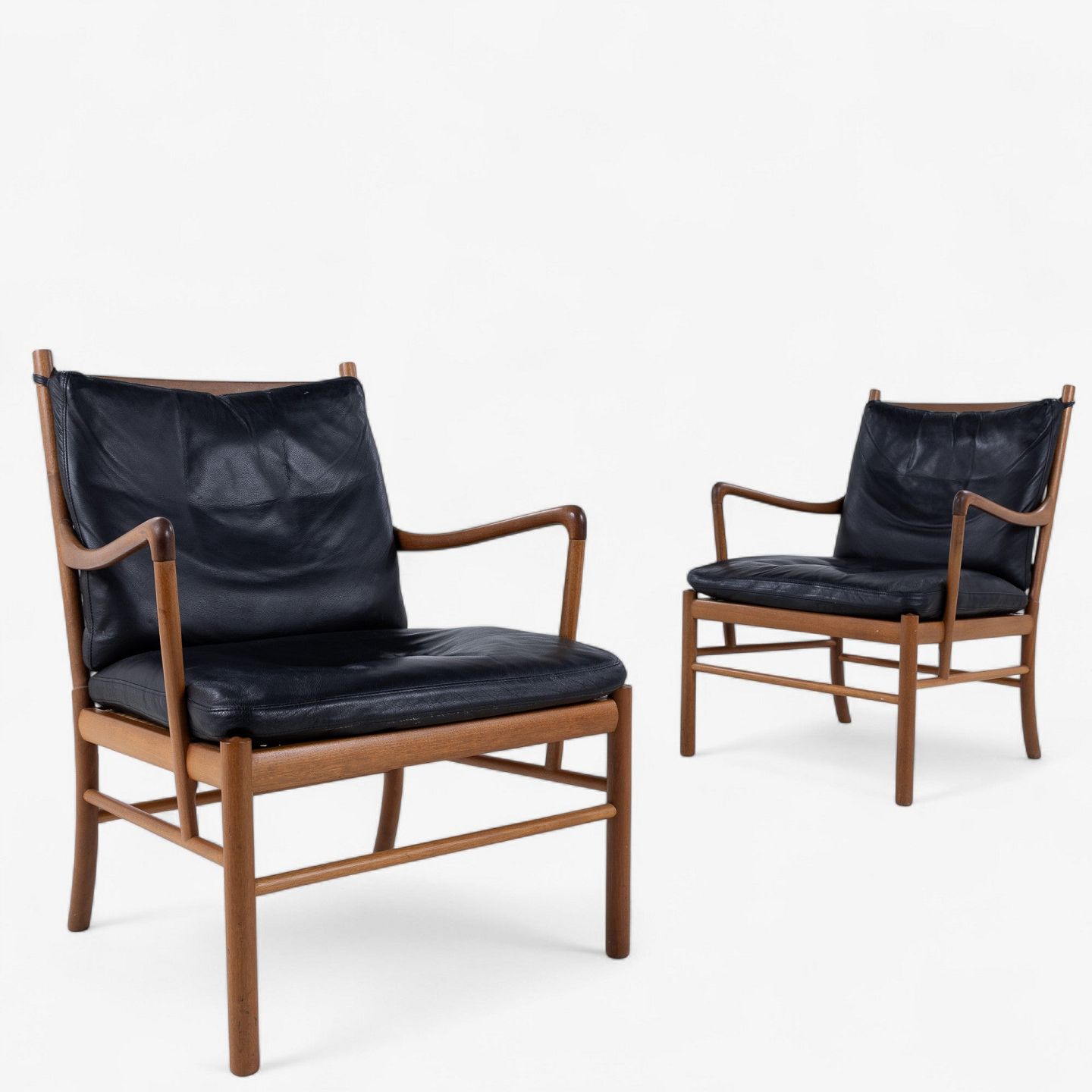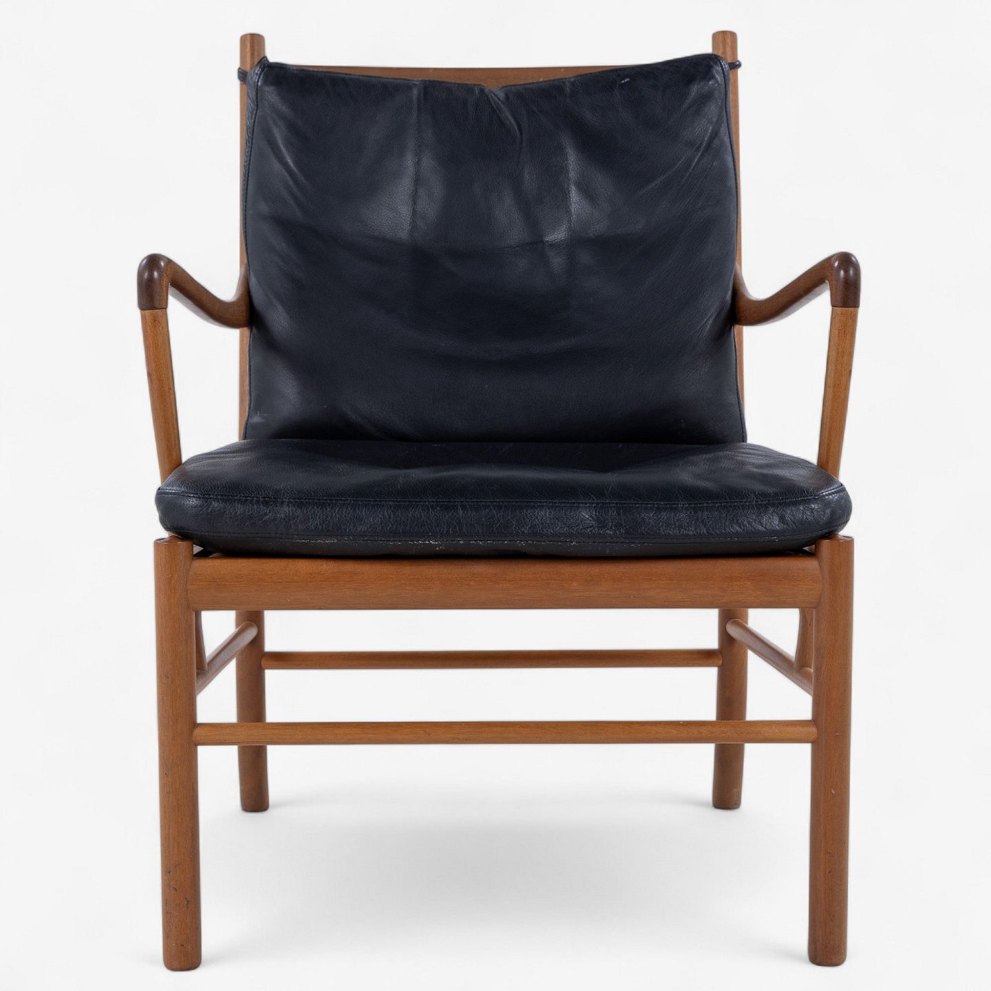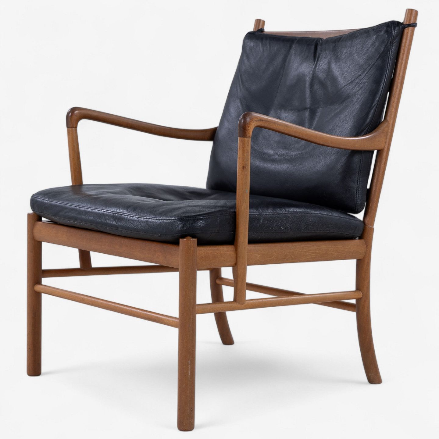 PJ 149 - 'Colonial Chair' armchair in mahogany with cushions in black patinated leather.