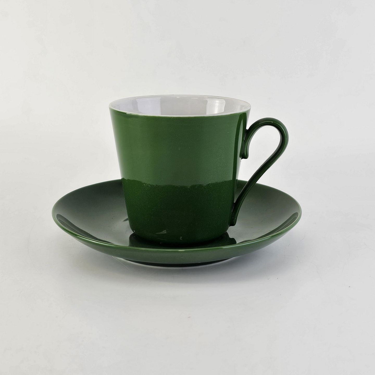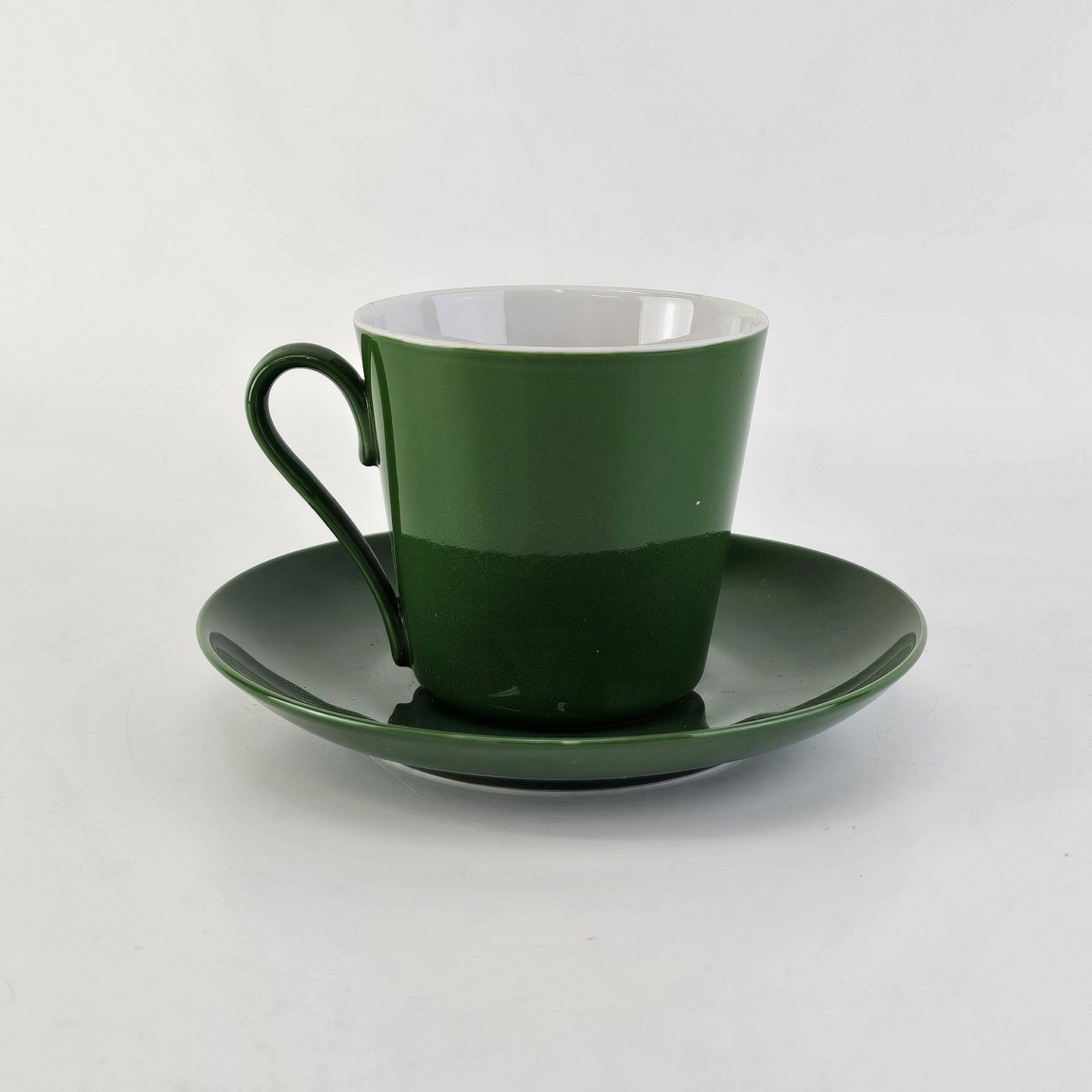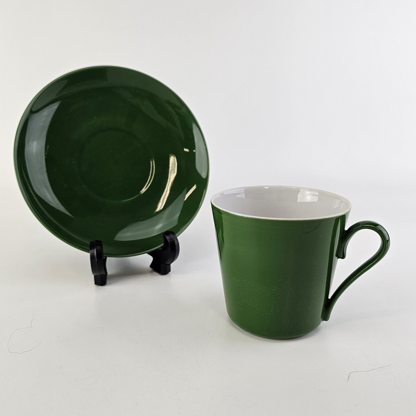 Kaffekop med underkop i porcelæn fra stellet Grøn GlasurfarvetProducent Porcelænsfabrikken Danmark, Lyngby