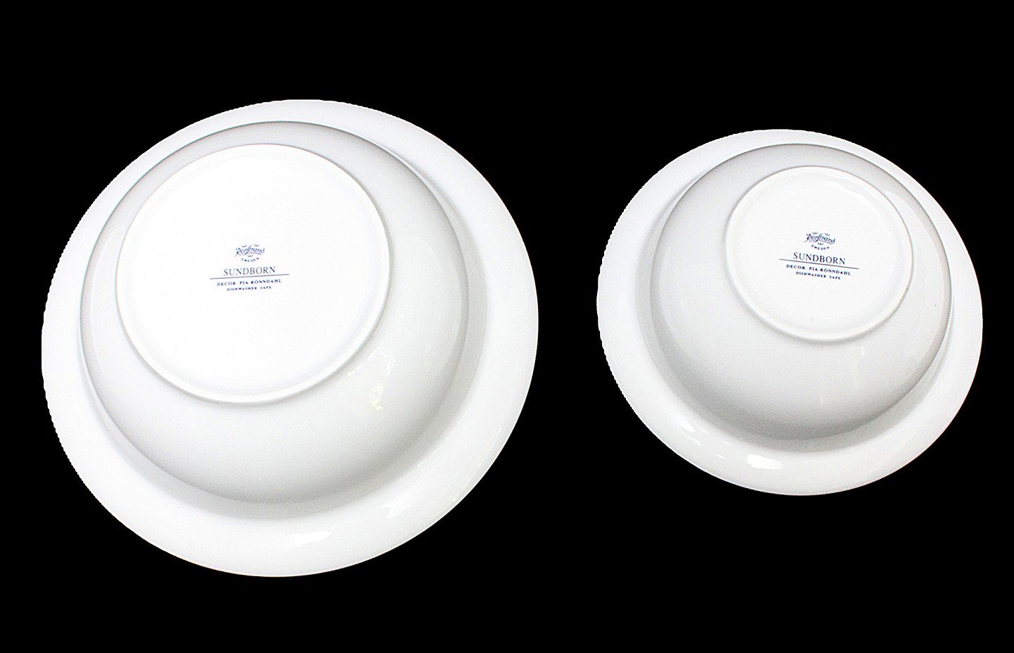 Rørstrand, Sundborn, dishwasher safe porcelæn. Dekoreret af Pia Rönndahl. Fra det oprindelige Rørstrand, da de stadig producerede i Sverige.Stor serveringsskål, salatskål. Højde 8 cm. Diameter 26,5 cm. Pris: 400 kr. stk. Lager: 1