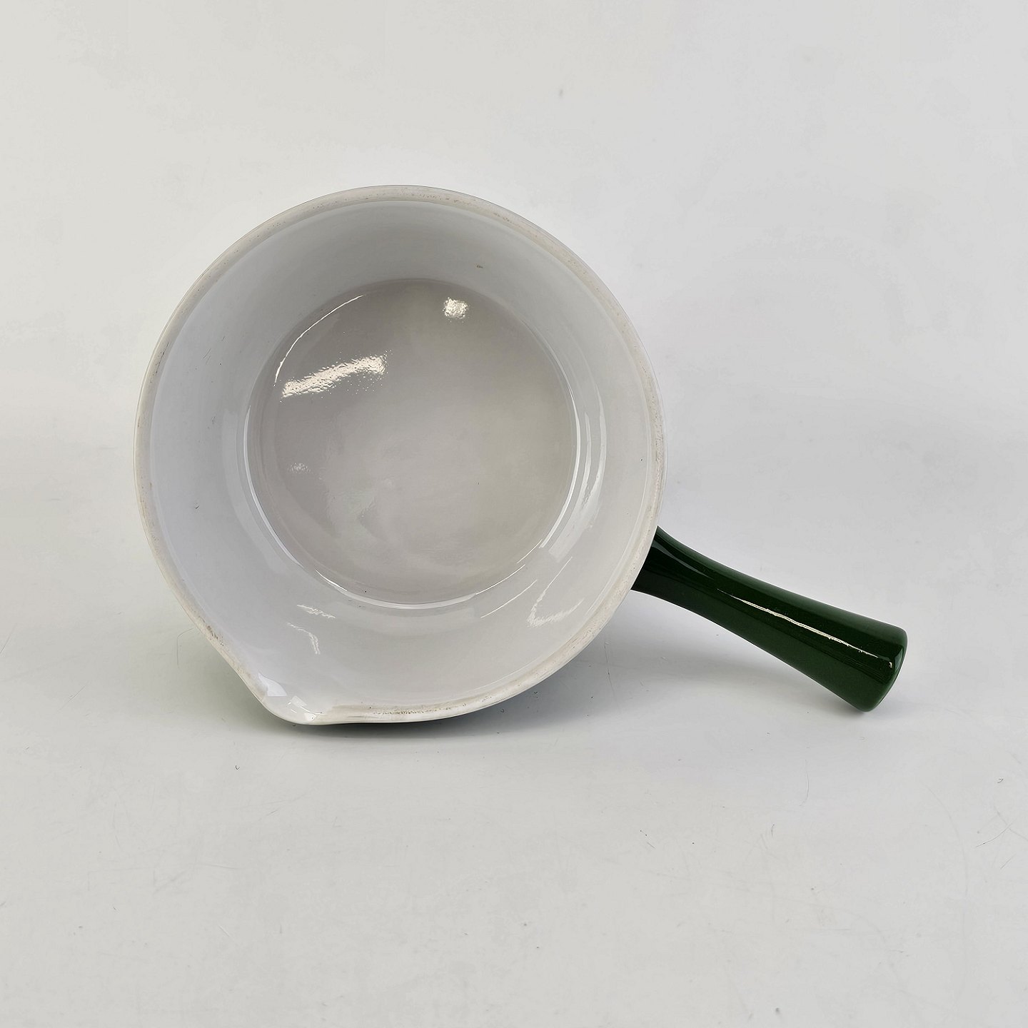 Smørnæb med håndtag og hældetud i porcelæn fra stellet Grøn GlasurfarvetProducent Porcelænsfabrikken Danmark, Lyngby
