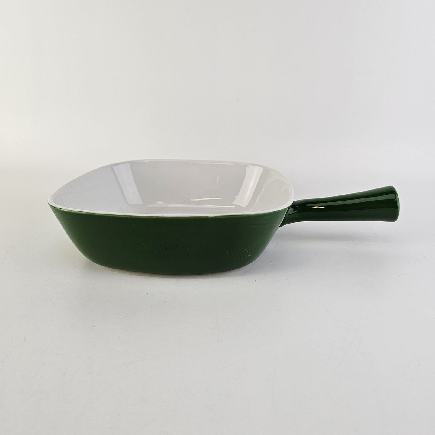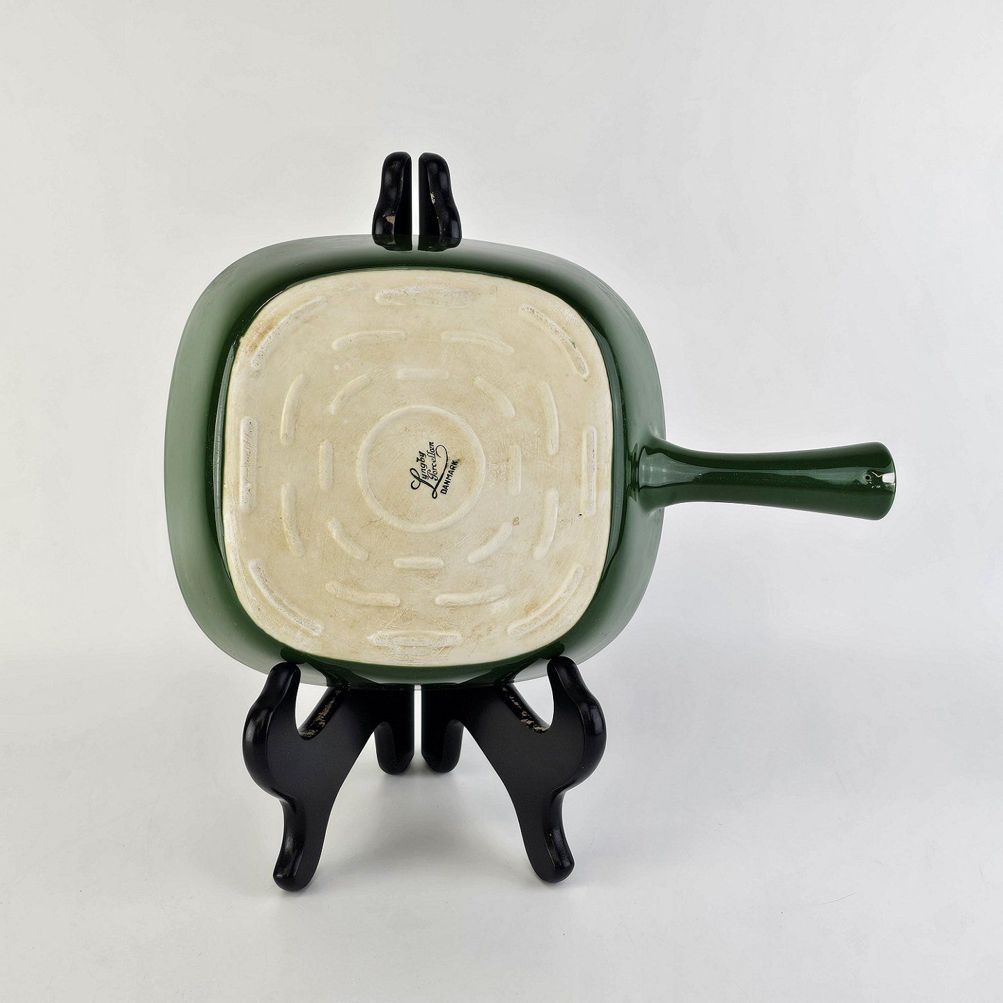 Firkantet fad med håndtag i porcelæn fra stellet Grøn GlasurfarvetProducent Porcelænsfabrikken Danmark, Lyngby