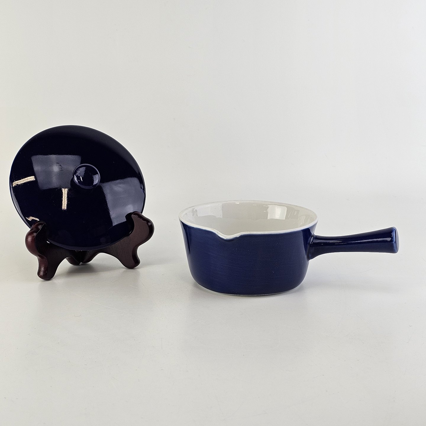 Smørnæb med håndtag og hældetud i porcelæn fra stellet Blå GlasurfarvetProducent Porcelænsfabrikken Danmark, Lyngby