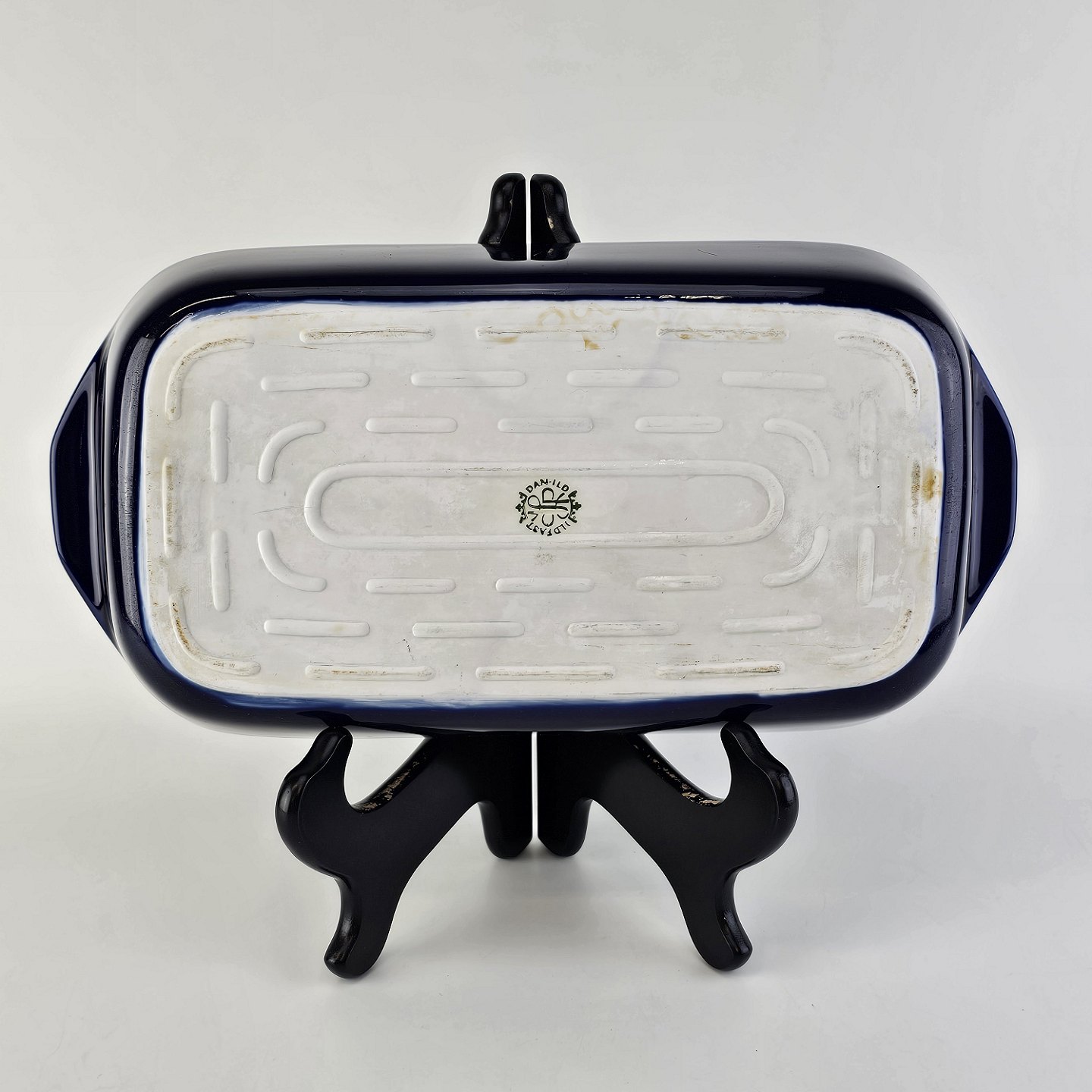 Rektangulært fad i porcelæn fra stellet Blå GlasurfarvetProducent Porcelænsfabrikken Danmark, Lyngby