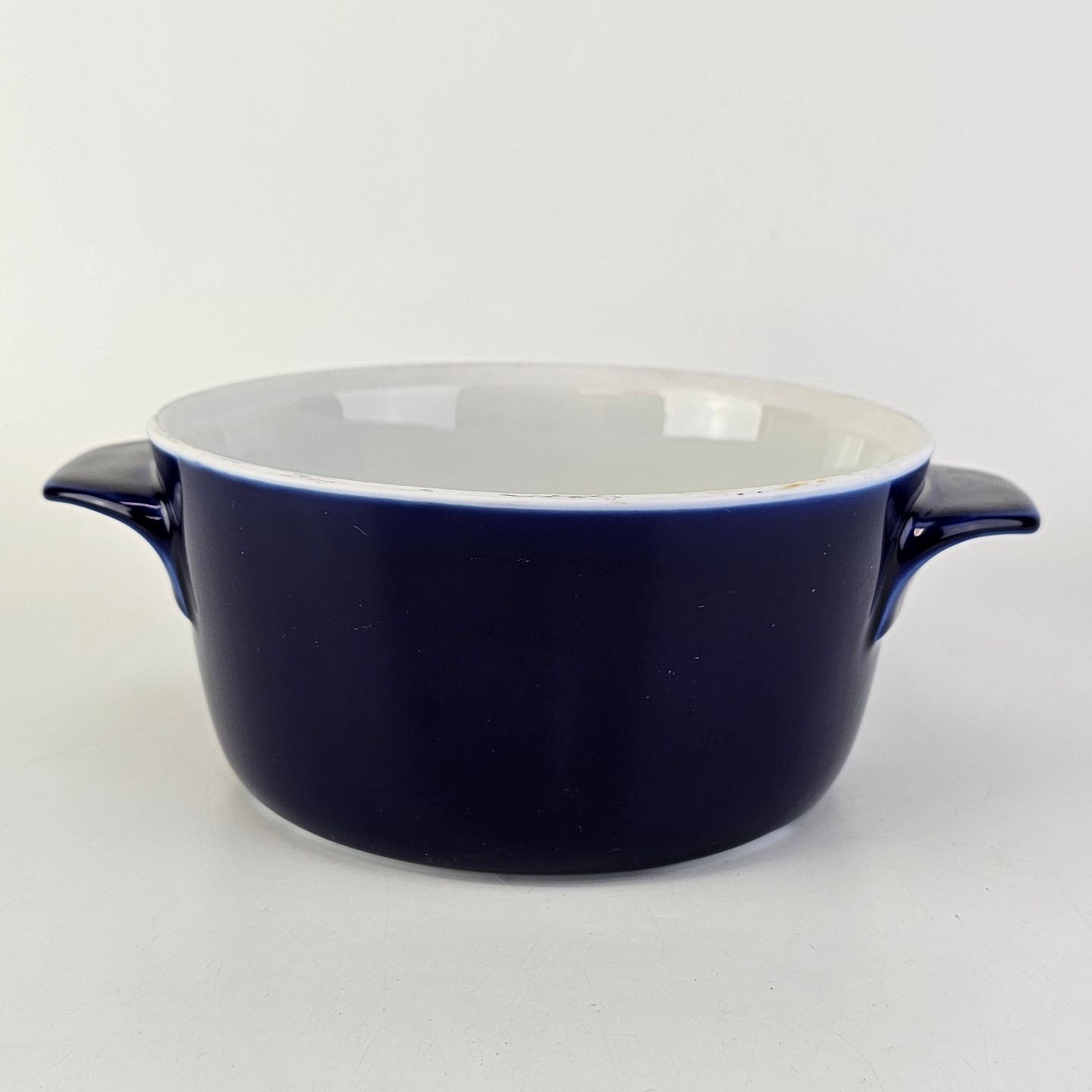 Gryde med håndtag i porcelæn fra stellet Blå GlasurfarvetProducent Porcelænsfabrikken Danmark, Lyngby