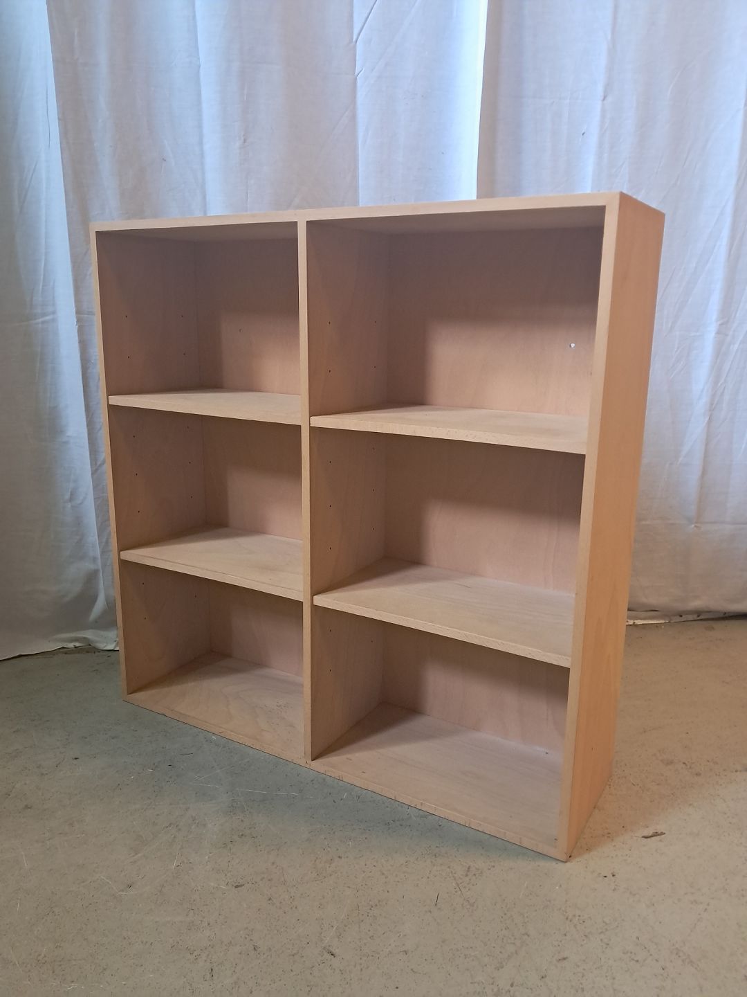 At-bo reolkasse i krydsfiner, fra 2000erne.Den har brugsspor og der medfølger ikke ophæng.