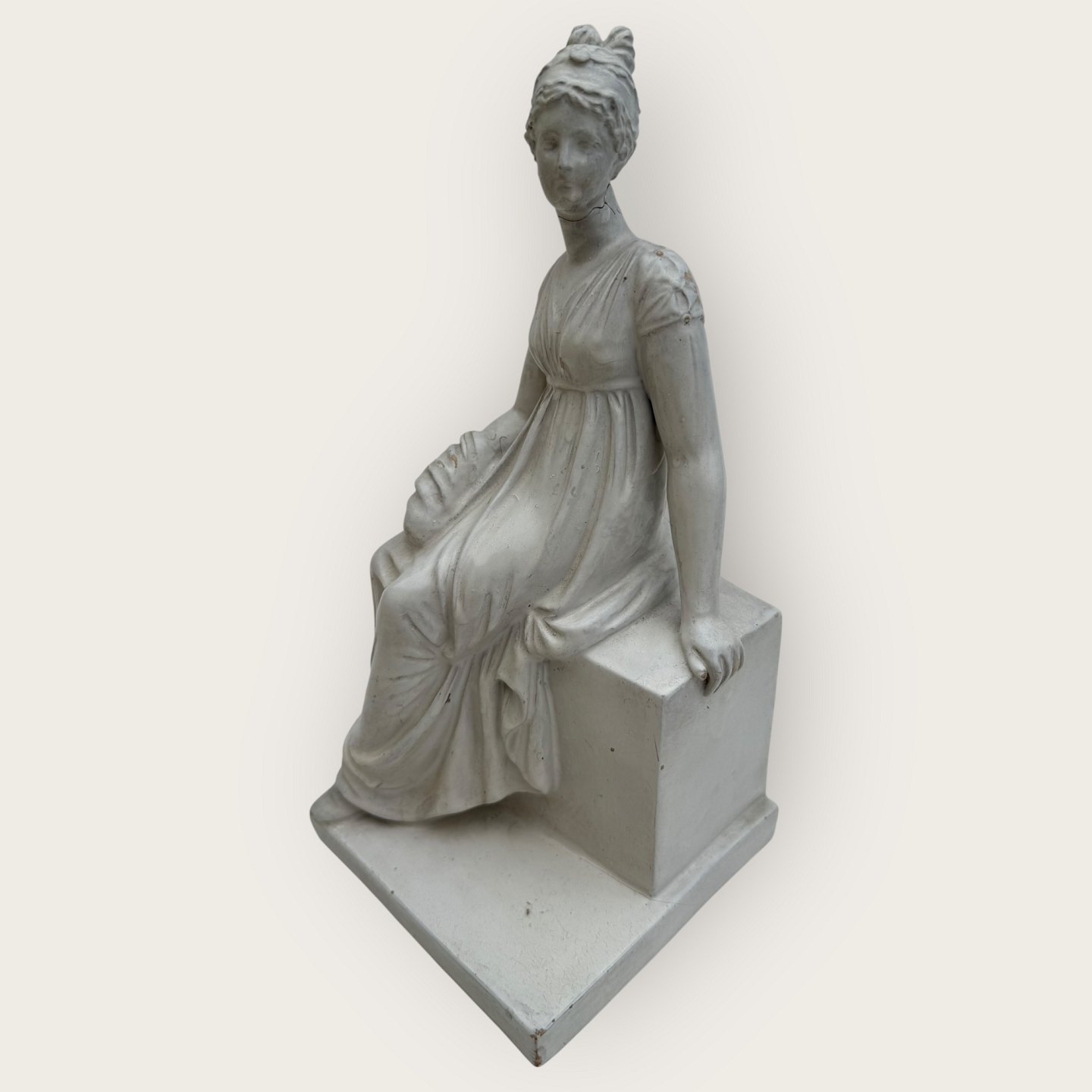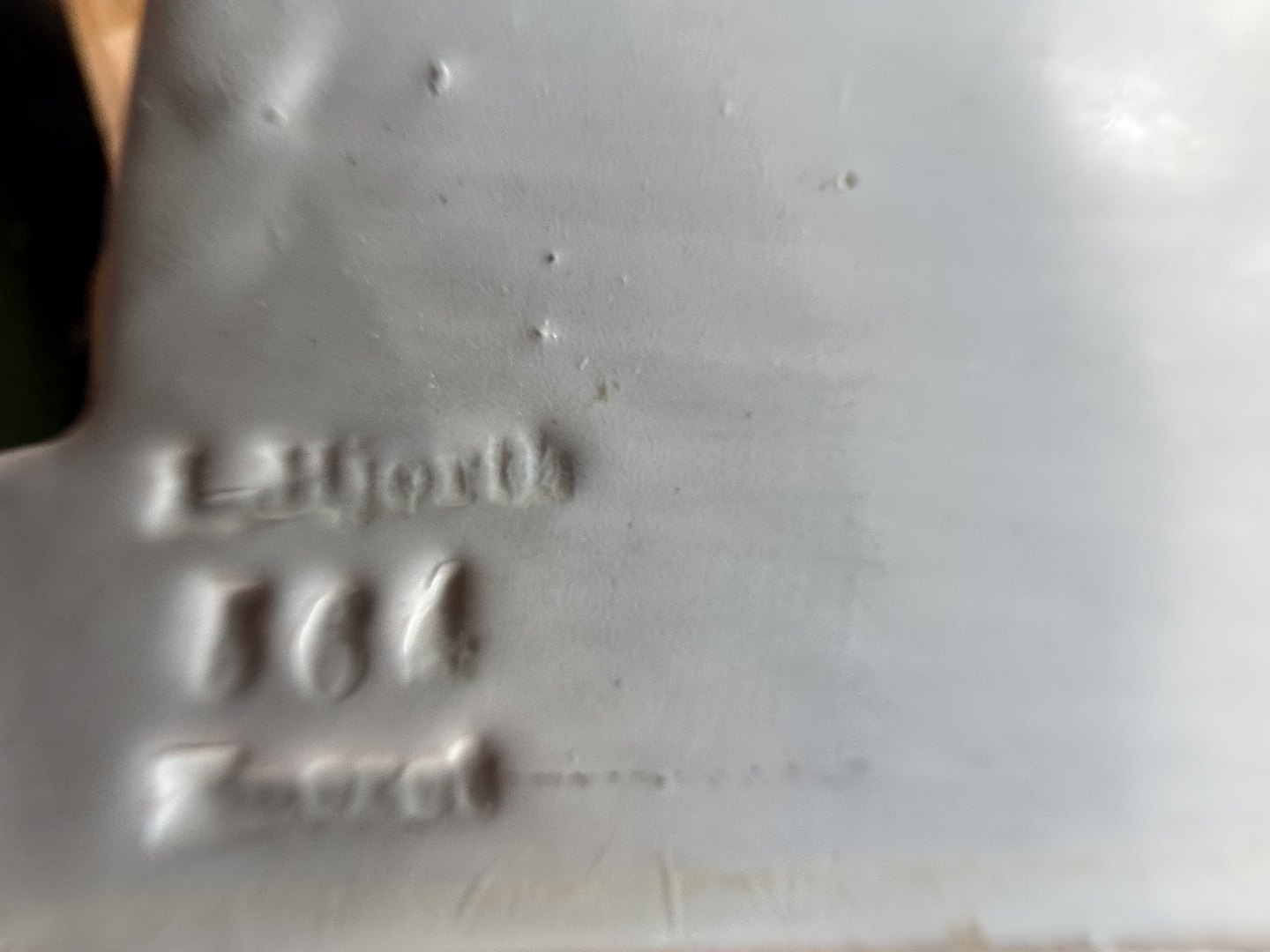 Older female figurine from Hjorth ceramics, Stamped: Hjort, 564, Exclusive, Measures approx. 23.5x12x11 cm, Has repair on the neck (see photo) and light peeling / patinated.Stock: 1