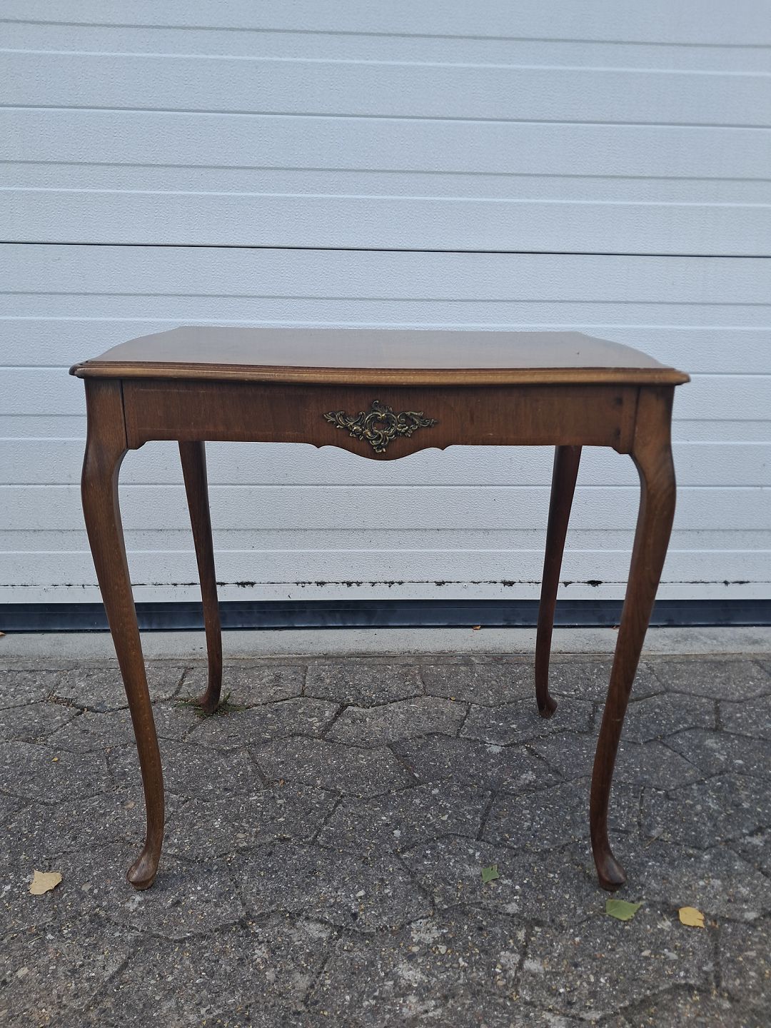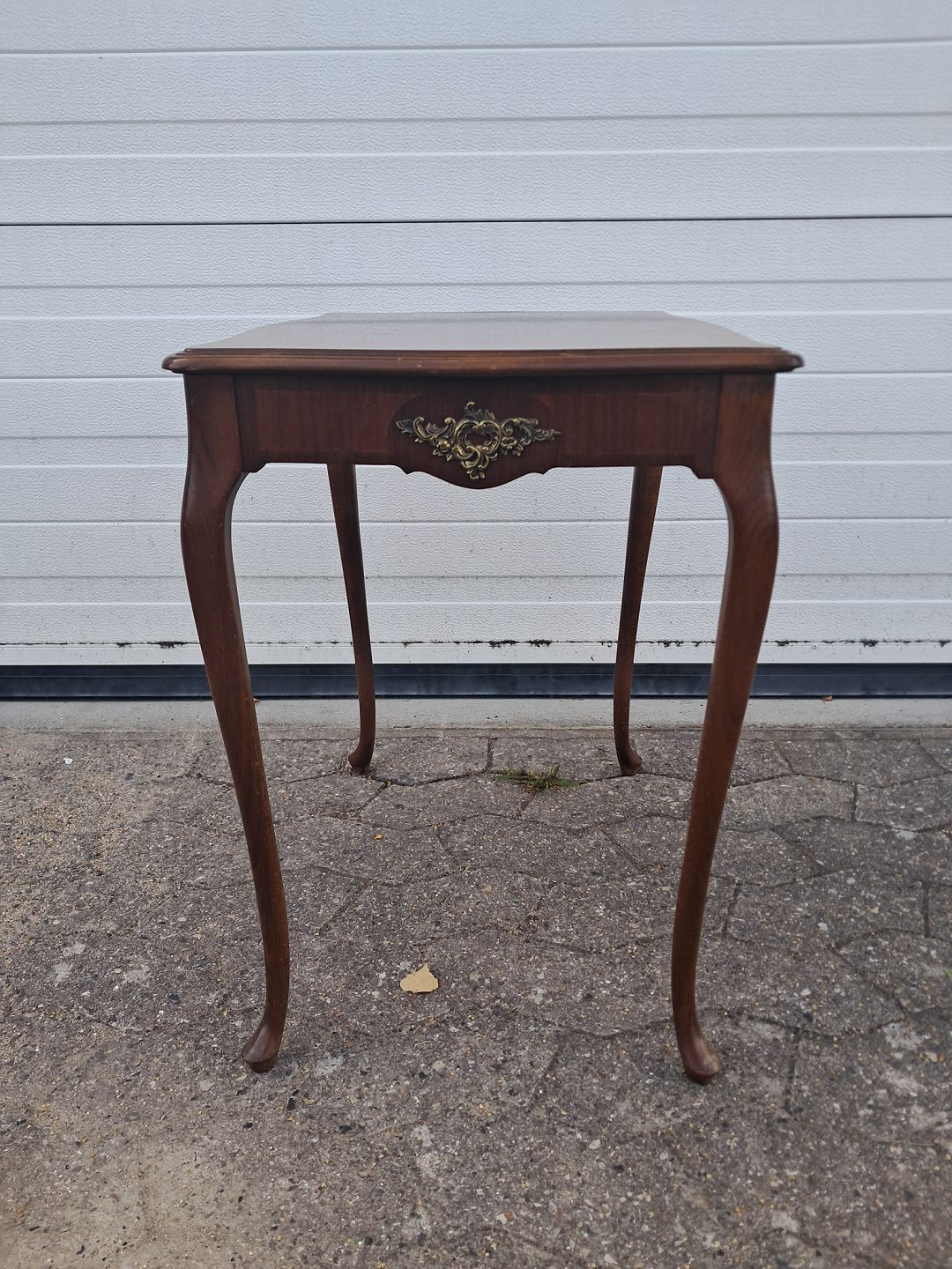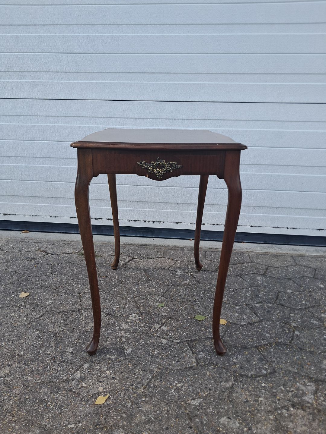 Sidebord i fineret mahogni, fra 1980erne.Det har brugsspor.