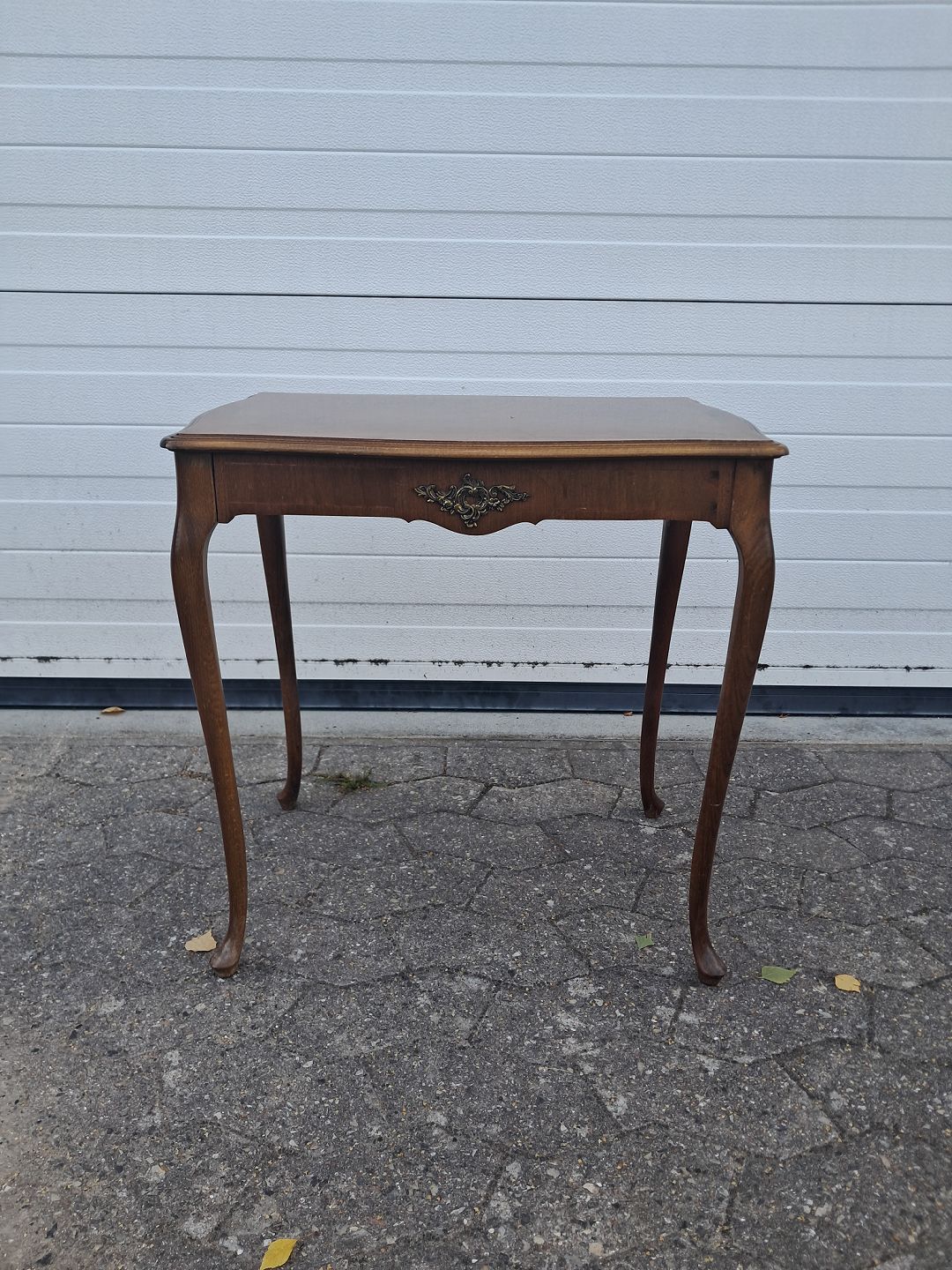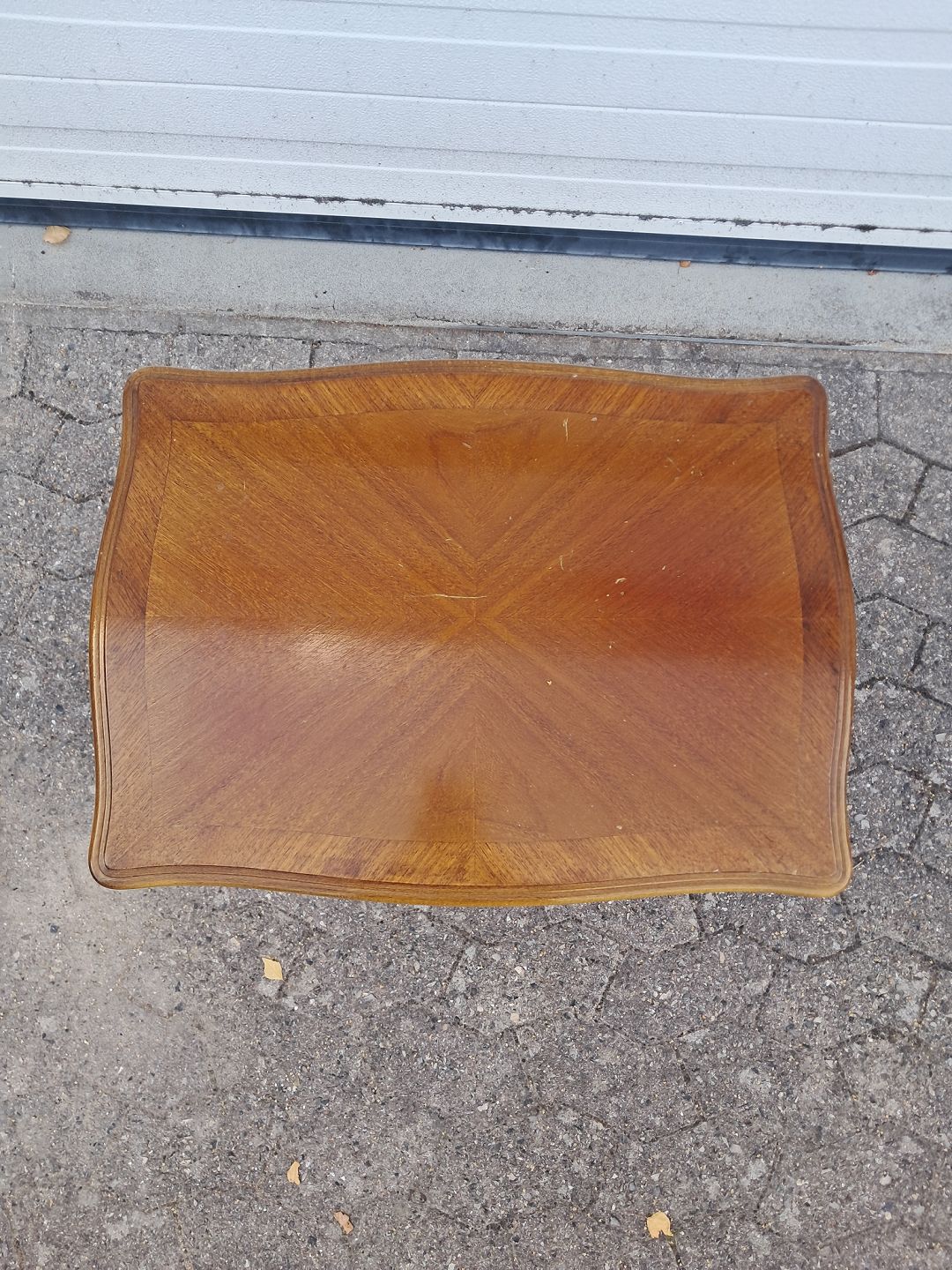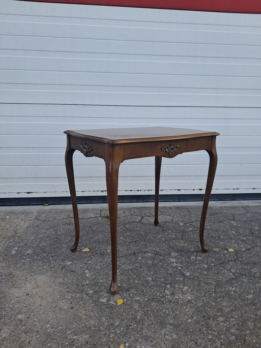Sidebord i fineret mahogni, fra 1980erne.Det har brugsspor.