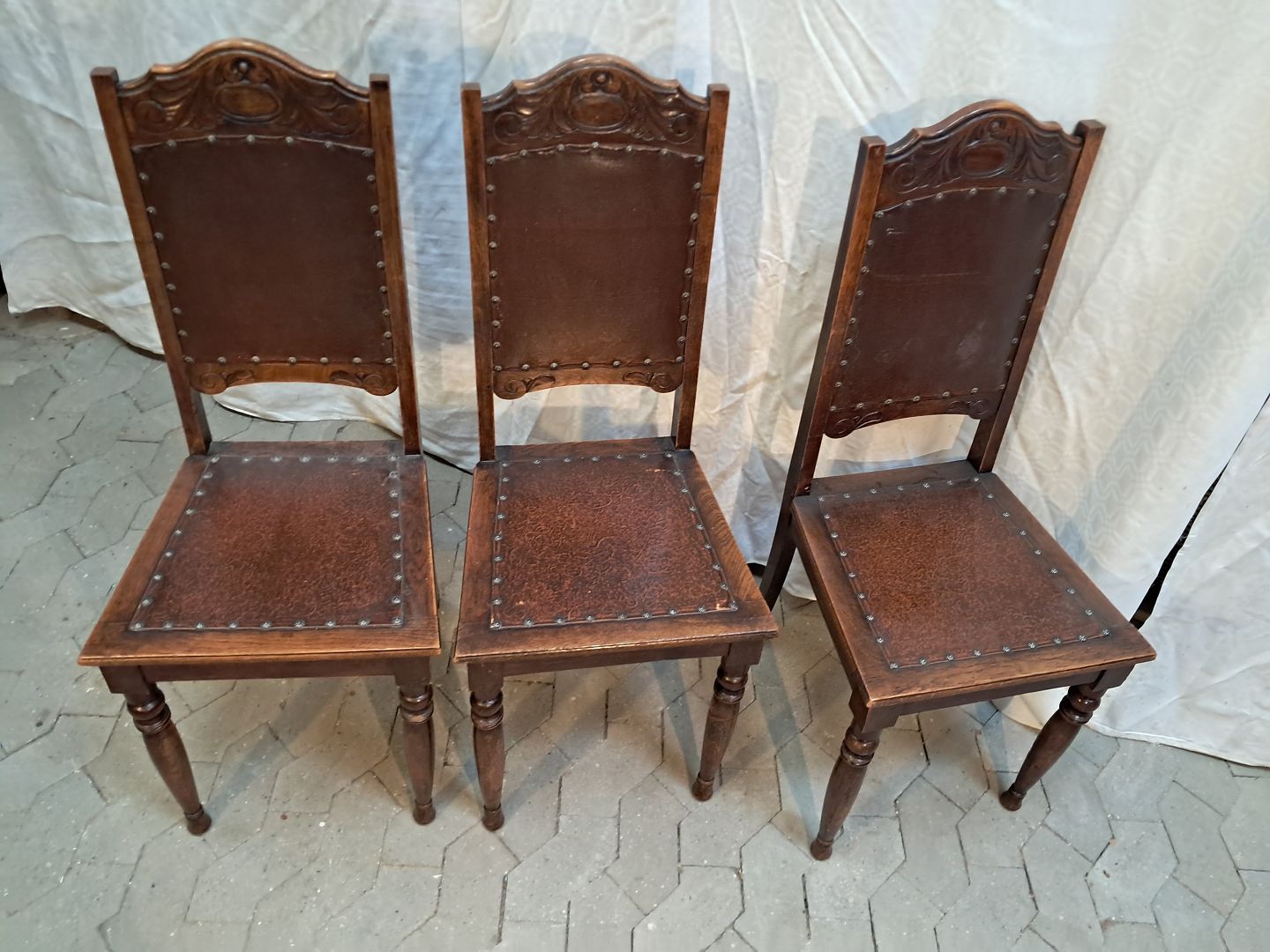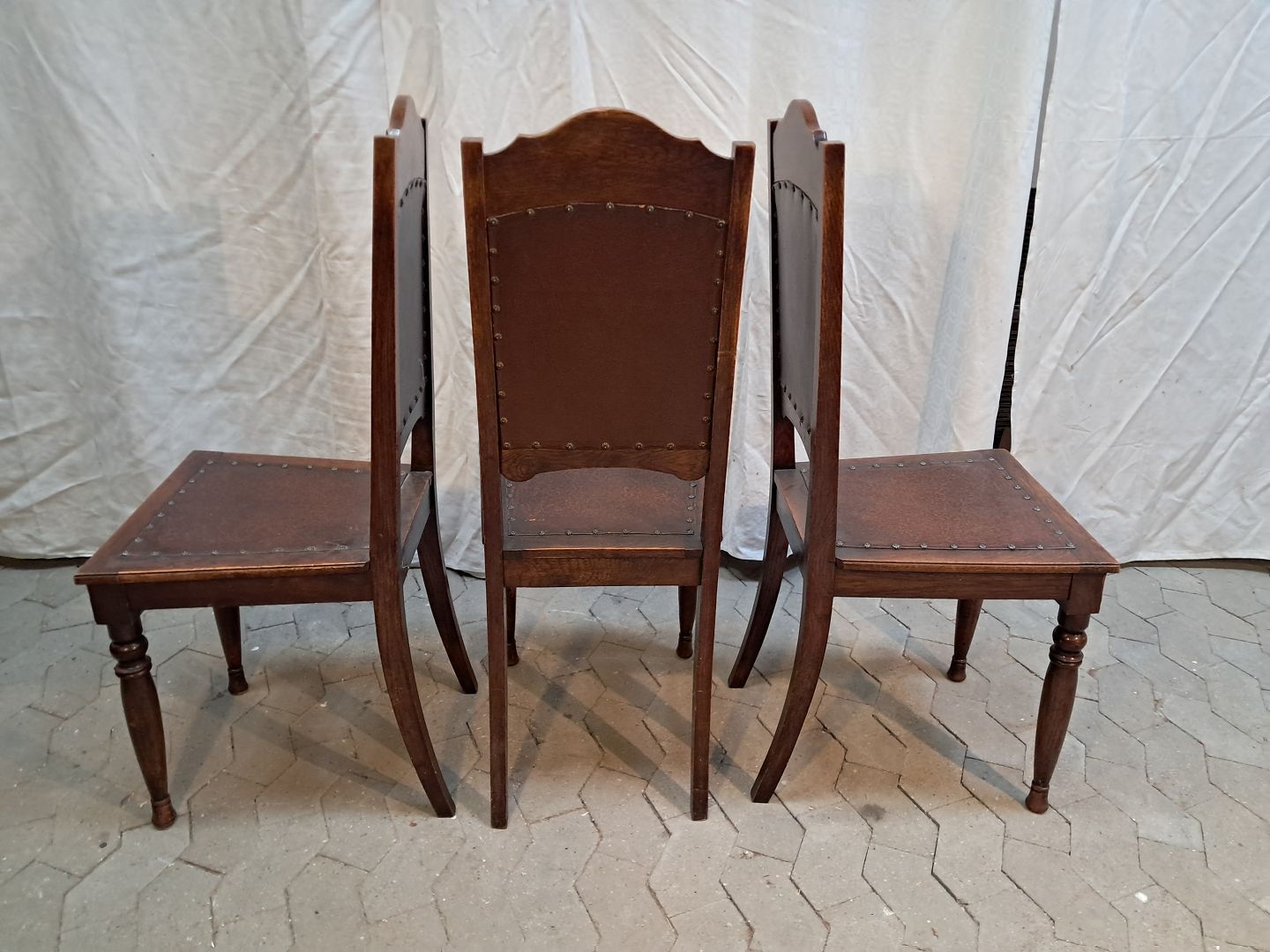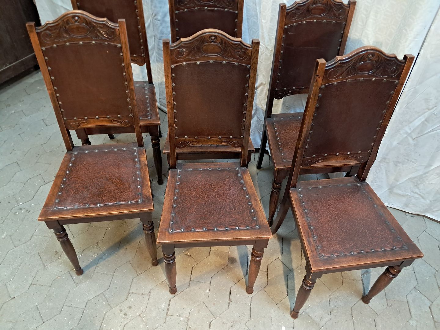 6 Stole i massivt egetræ, fra 1920erne.De har brugsspor.
