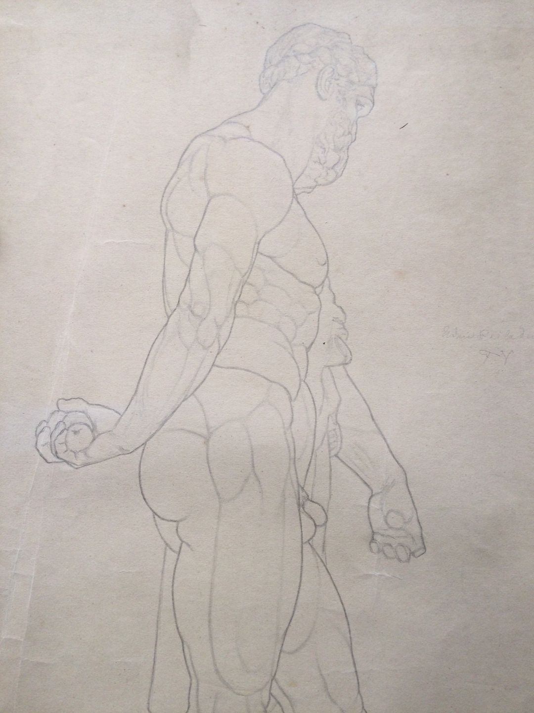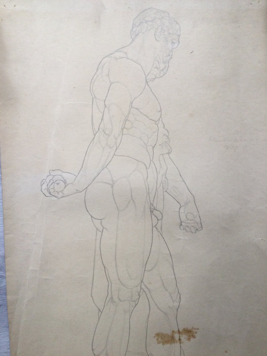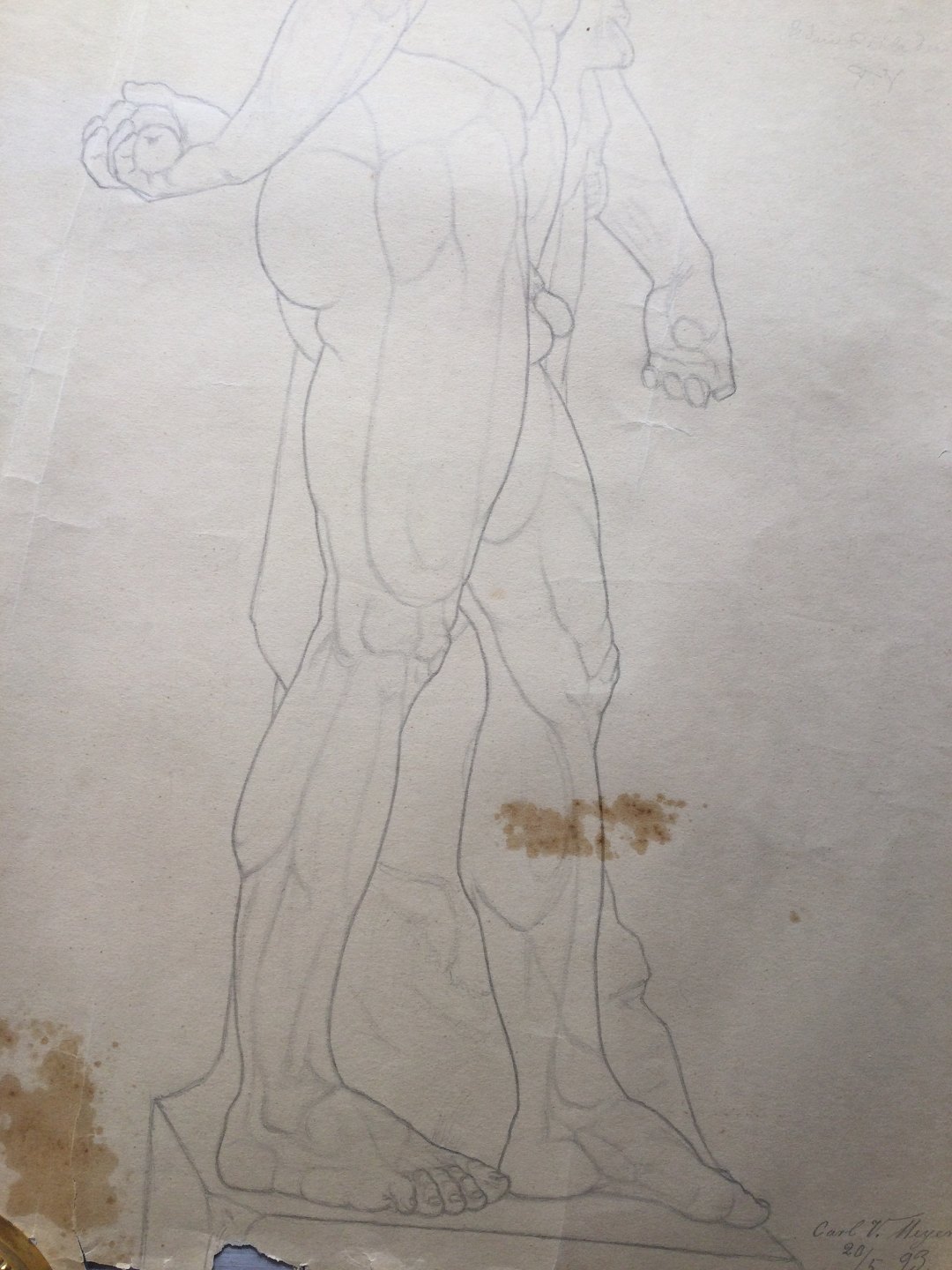 Akademitegning af Carl V. Meyer 1893 - Stor stærk nøgen mand.
