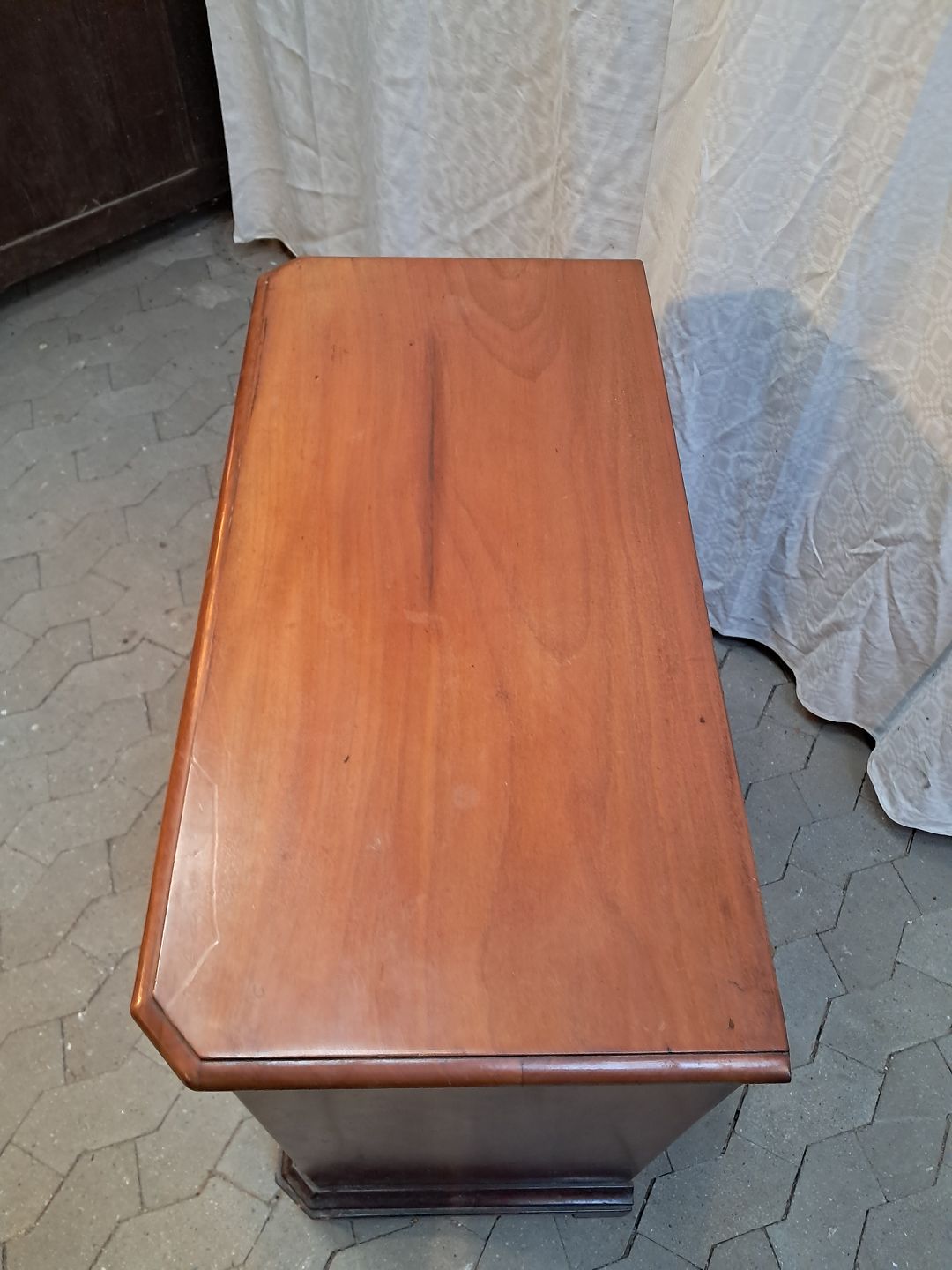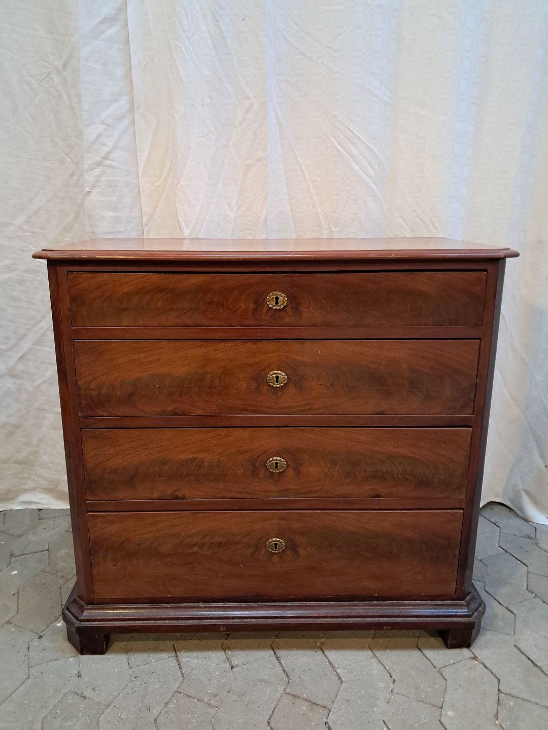 Kommodei fineret mahogni, fra 1910erne.Den har brugsspor.