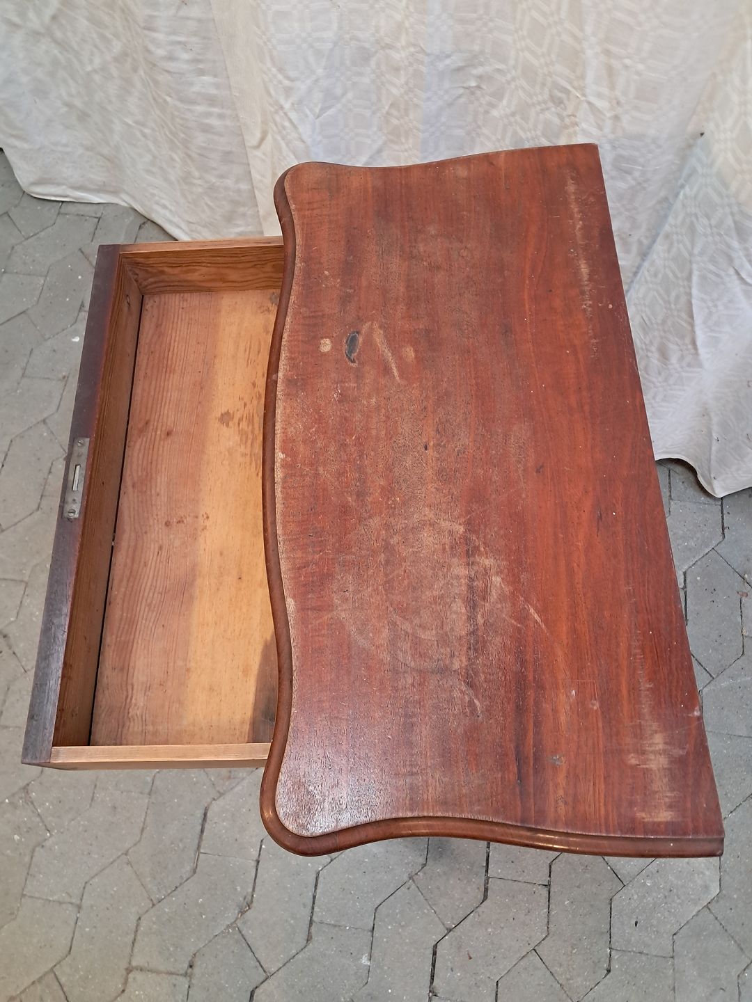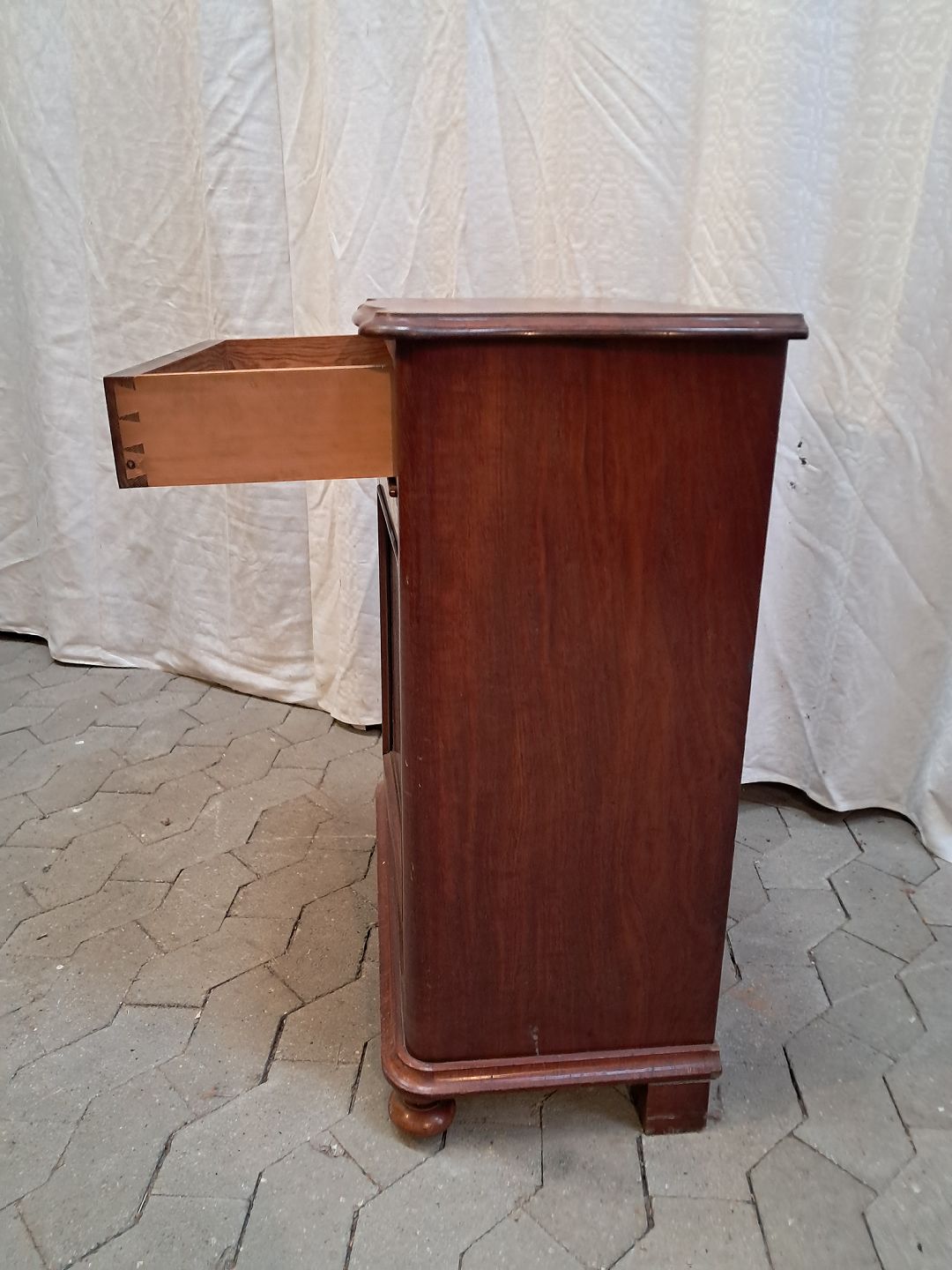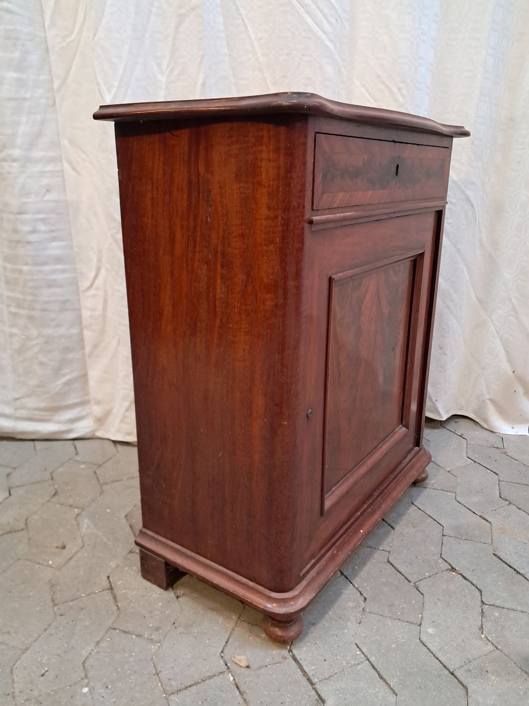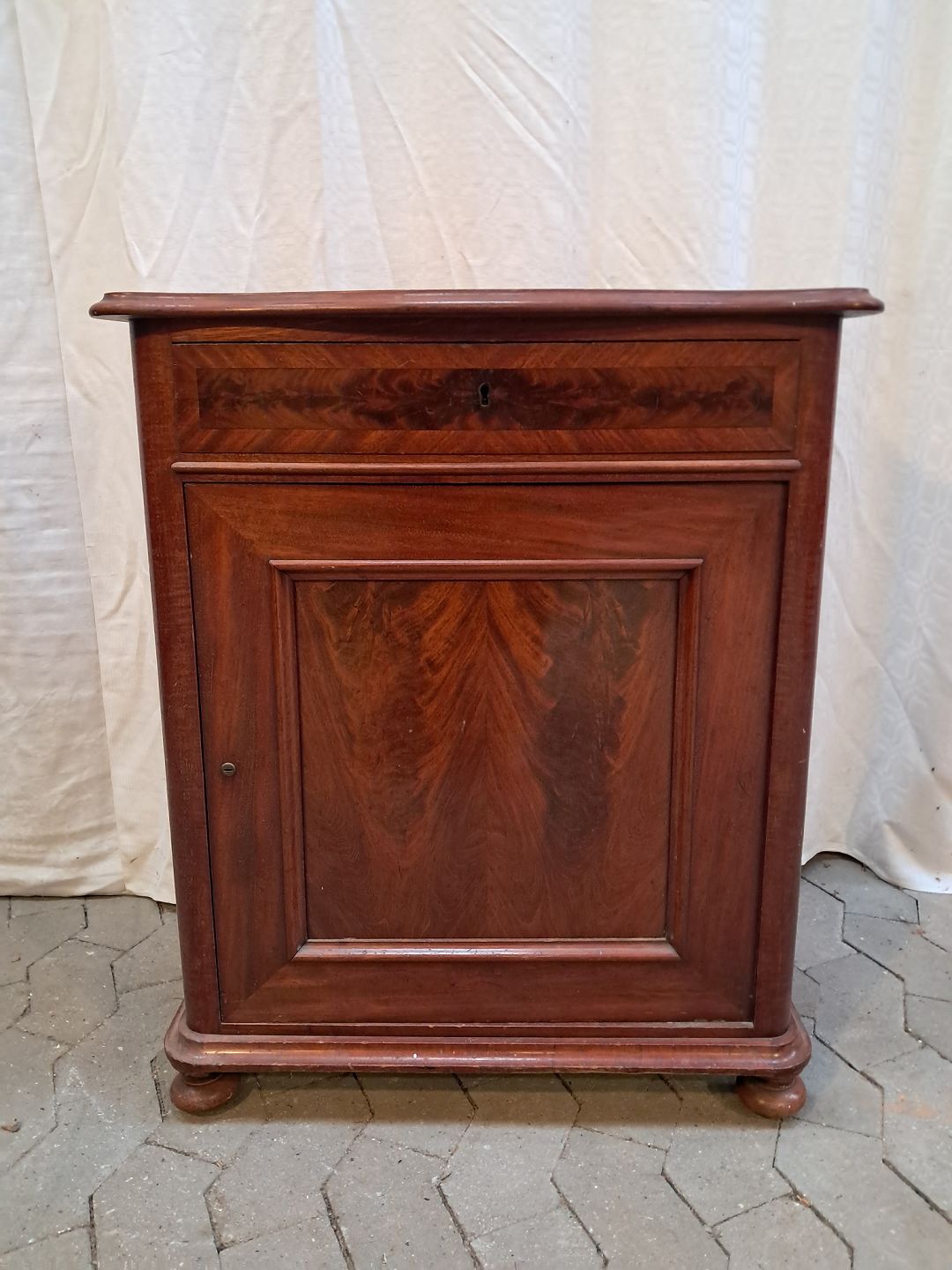 Skab i fineret mahogni, fra 1910erne.Det har brugsspor.