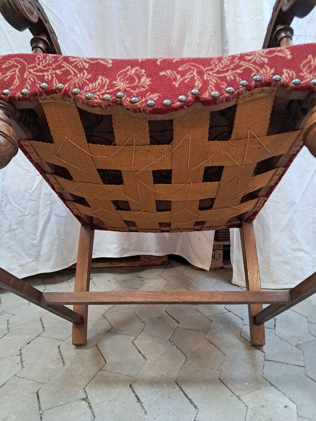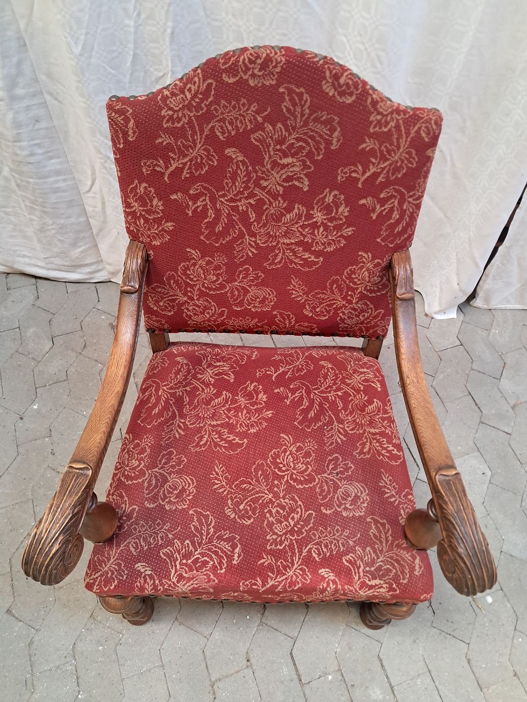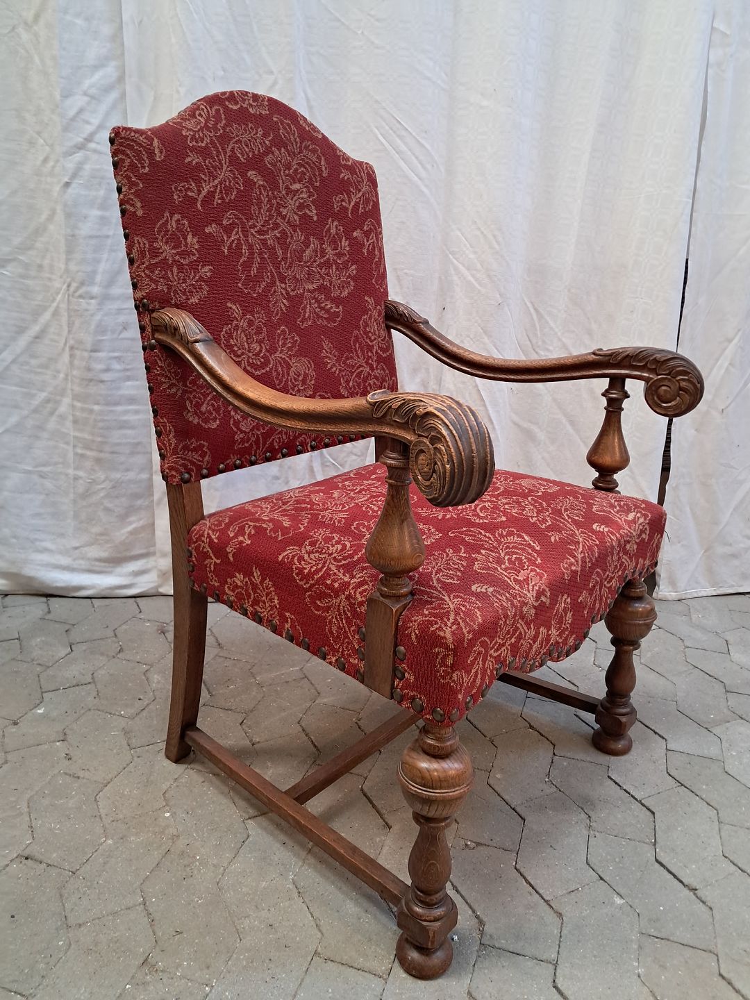 Armstol i massivt egetræ, fra 1930erne.Den har brugsspor.