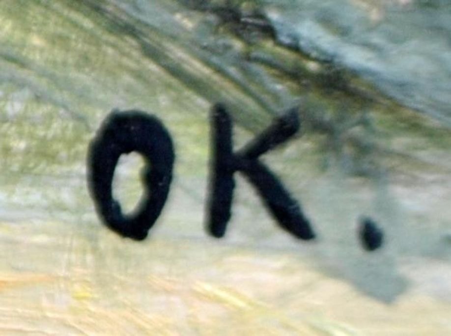 Kielberg, Ole (1911 - 1985) Denmark: Karlebo Mølle, 1961. Oil on masonite. Signed: OK. Signed on the back: Ole Kielberg Karlebo Mølle 1961. 38 x 60 cm.Framed: 45.5 x 68.5 cm.