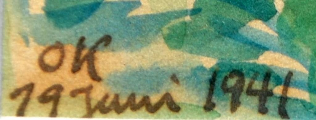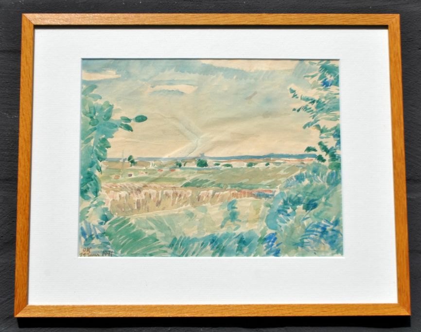 Kielberg, Ole (1911 - 1985) Denmark: Field landscape, 1941. Watercolor on paper. Signed: OK 19 June 1941. H: 20.5 cm. W: 26.5 cm.Framed: H: 30.5 cm. W: 38.5 cm.