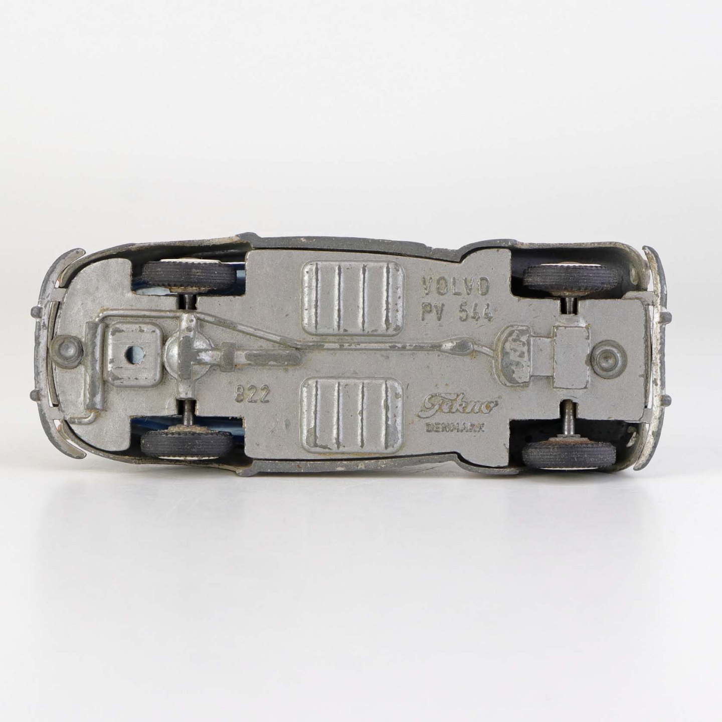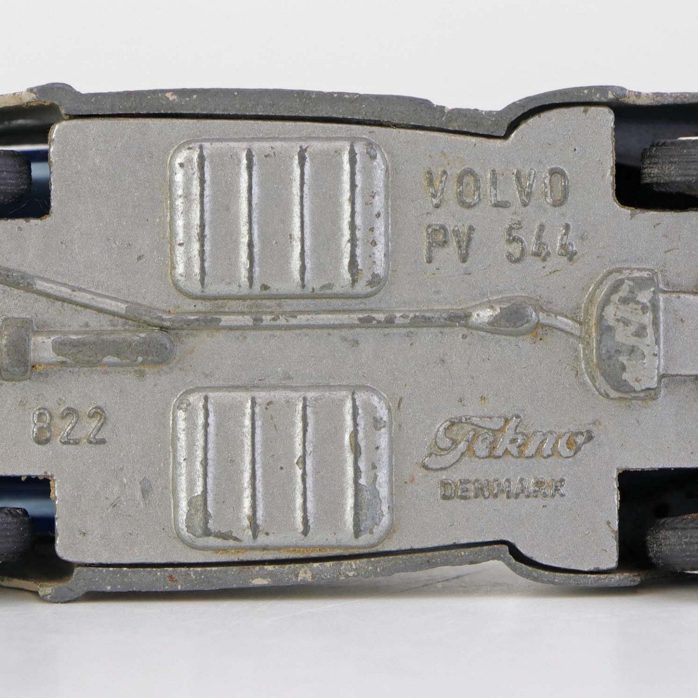 Beigefarvet Volvo PV 544 legetøjsbil i lakeret metal med gummi hjul. Nr. 822Producent Tekno, Denmark