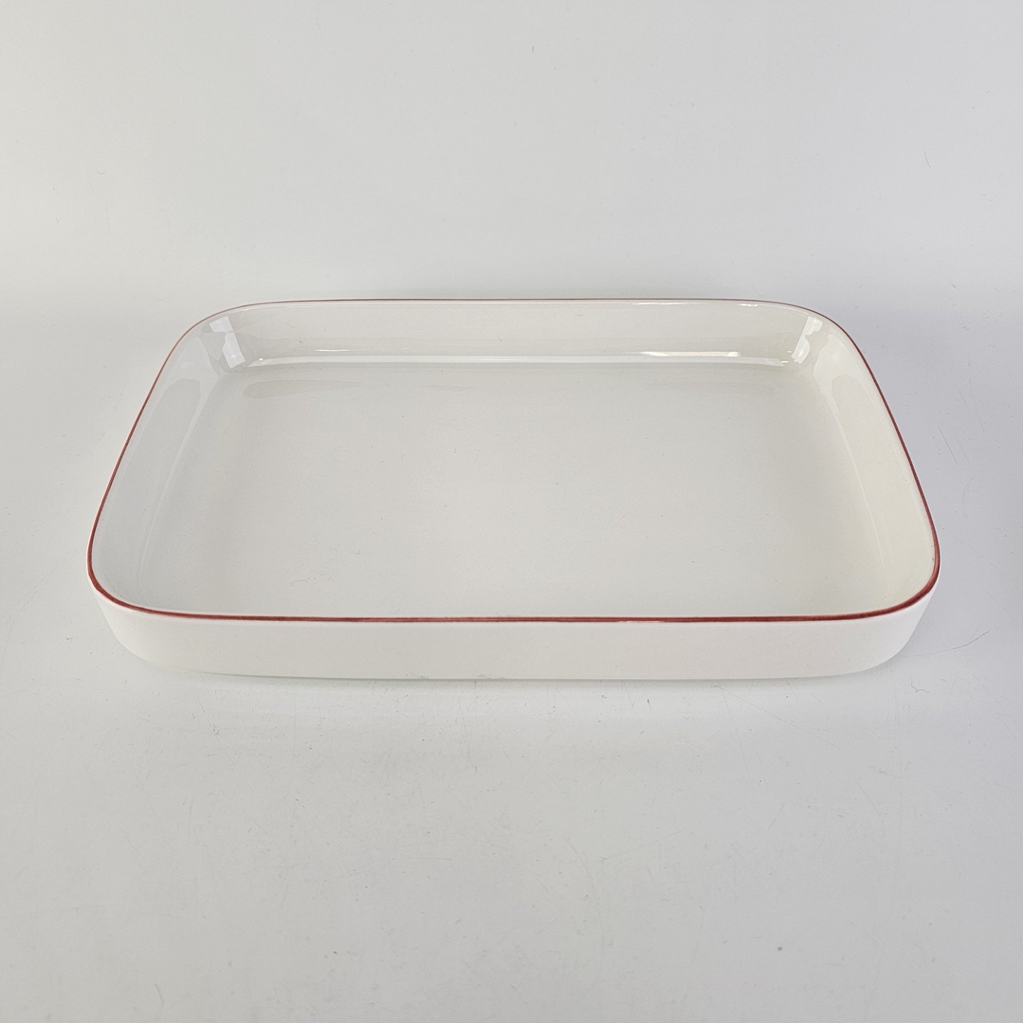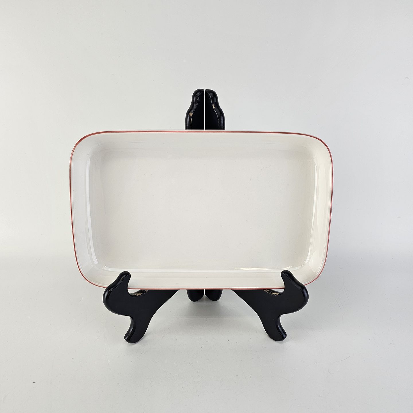 Aflangt fad i fajance fra stellet 4 All Seasons med rød kant Nr. 3078