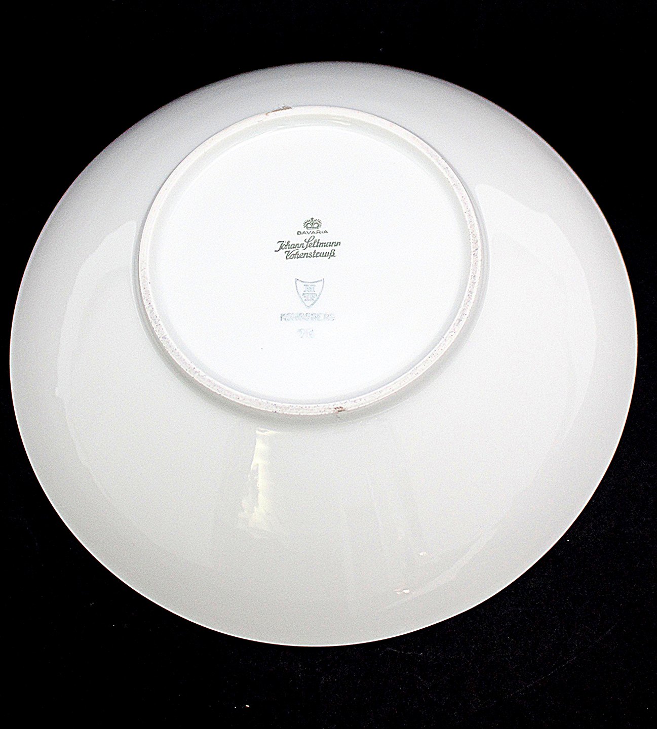 Johan Seltmann, Bavaria, Kongsberg, Kartoffelskål. Lidt brugsslid på guldkant. Diameter 21,5 cm. Højde 6,5 cm. Pris: 90 kr. stk. Lager: 1 Udstiller