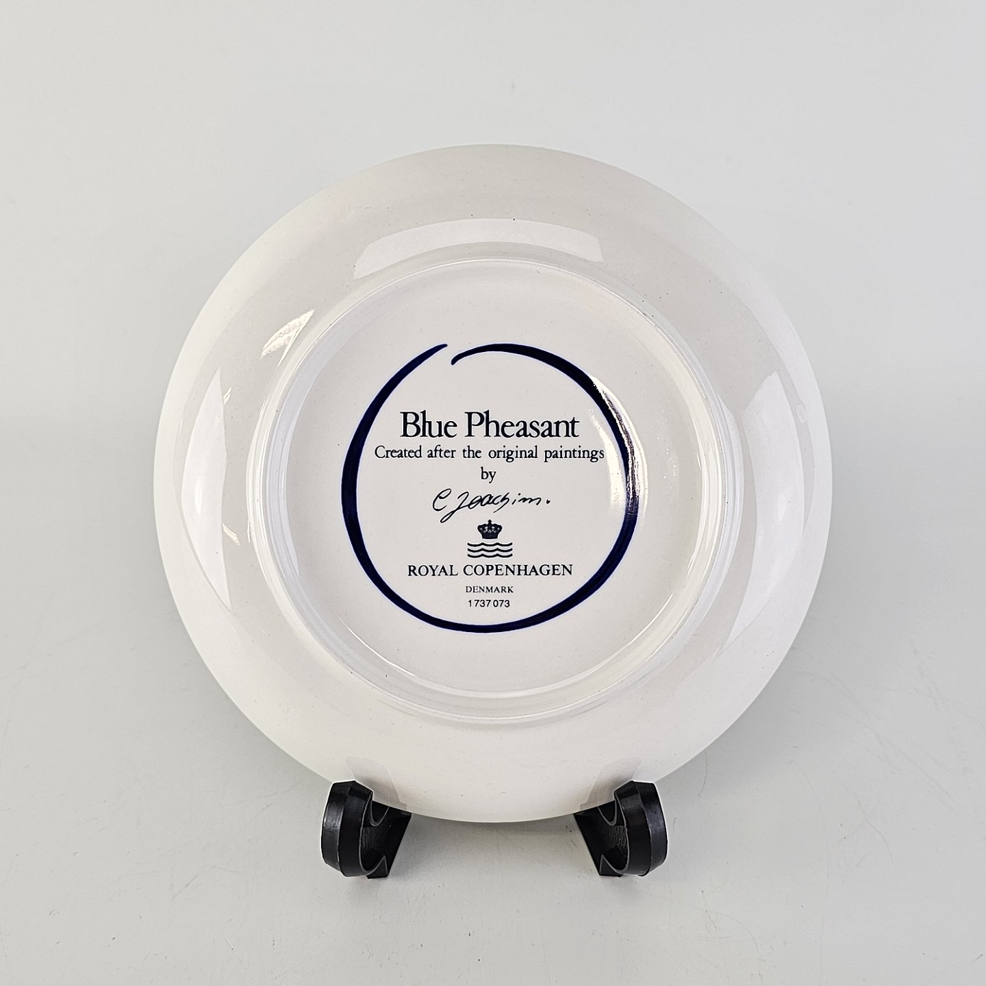 Blue Pheasant er fremstillet i glat lys fajance med motiv af en fasan med blå og gule farver. Kanterne er dekoreret med gule kornakse og blå blomster