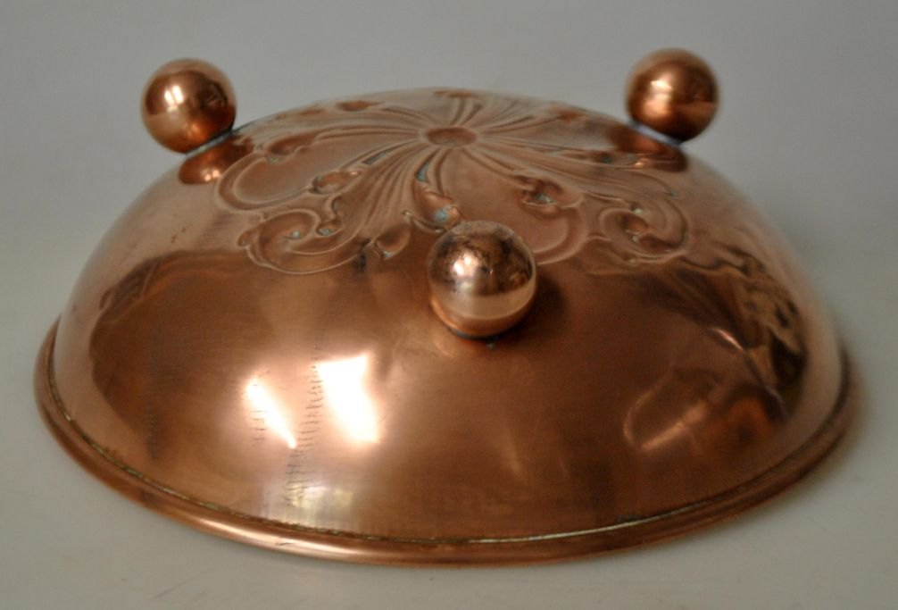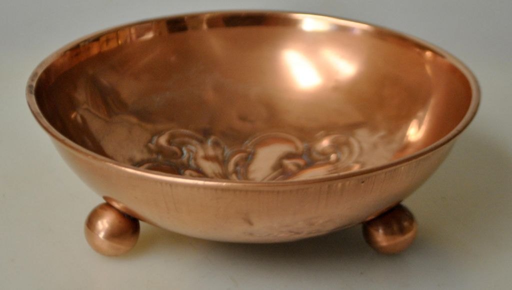 Copper bowl, 19th century. On three ball legs. With floral decoration. H: 4 cm. Dia: 13 cm.Item number: 28183