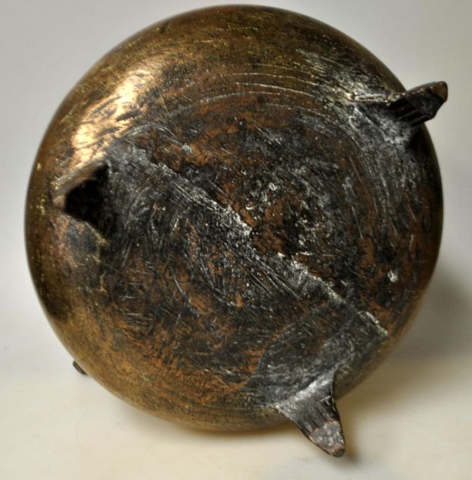 Three-legged pot in bronze, 17th/18th century. Northern Germany. With handle and three legs. Unmarked. H.: 20 cm. Height with handle: 30 cm. Dia.: 20.5 cm.Item number: 28217