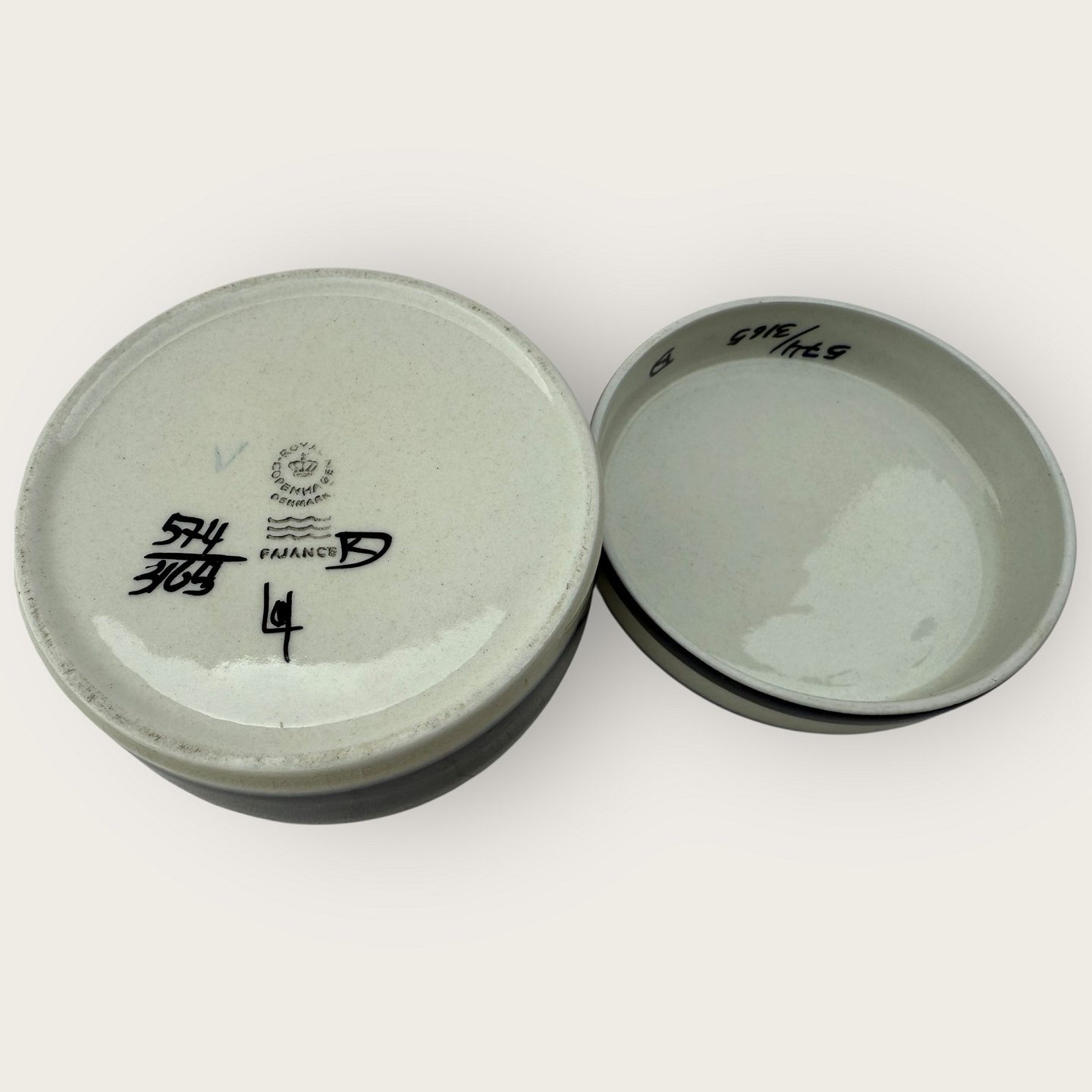 Aluminia, Bonbonnierer / small jar with lid, # 574/3165, Diameter 8.5cm, height 5cm, *Slight cracks inside (see photo) otherwise good condition*Stock: 1