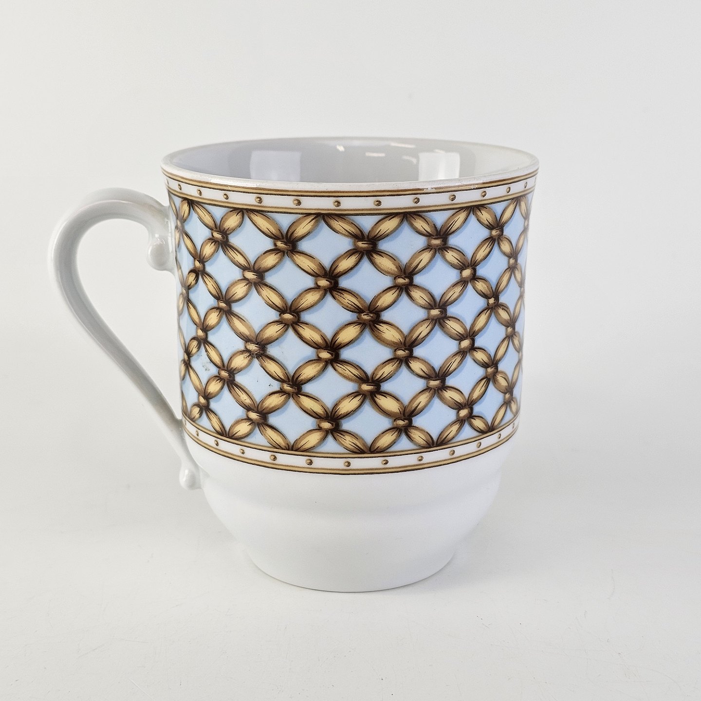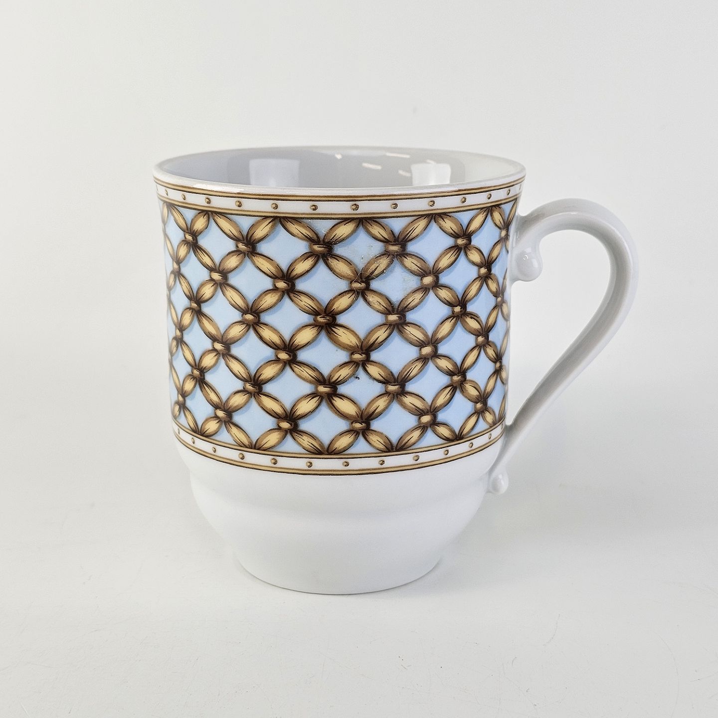 Liselund er hvidt porcelæn dekoreret i lyseblå eller mørkeblå nuancer med fletmønster