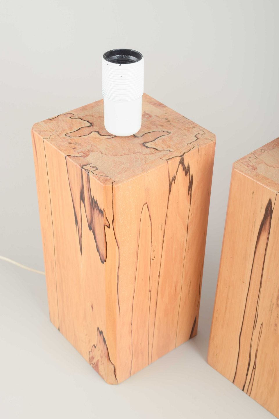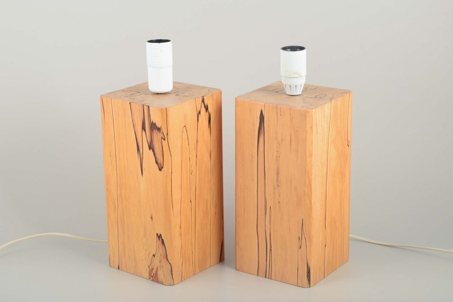 A pair of Scandinavian Table LampsSolid wood base with minimalist socket – 1980s/90s