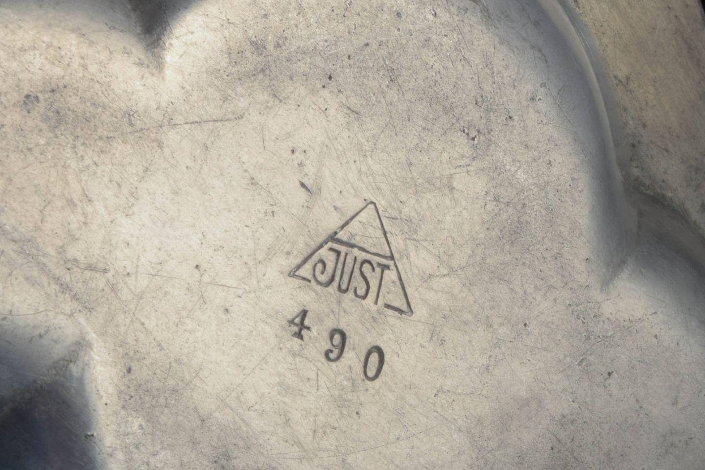 Just Andersen (1884–1943) was a Danish sculptor and designer, renowned for his work in pewter, silver, and the self-developed metal alloy “Disko.” He founded his workshop in Copenhagen in 1918 and created a wide range of functional and decorative objects with simple, organic forms that reflect Scandinavian modernism. After his death in 1943, the company continued under the name Just, with pewter production continuing through the 1940s and 1950s.