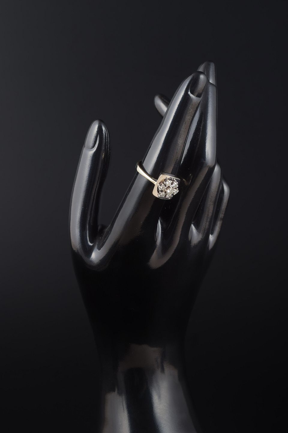 Geometric white gold ring set with seven brilliant-cut diamonds arranged in a floral cluster. Total weight approx. 4 g.