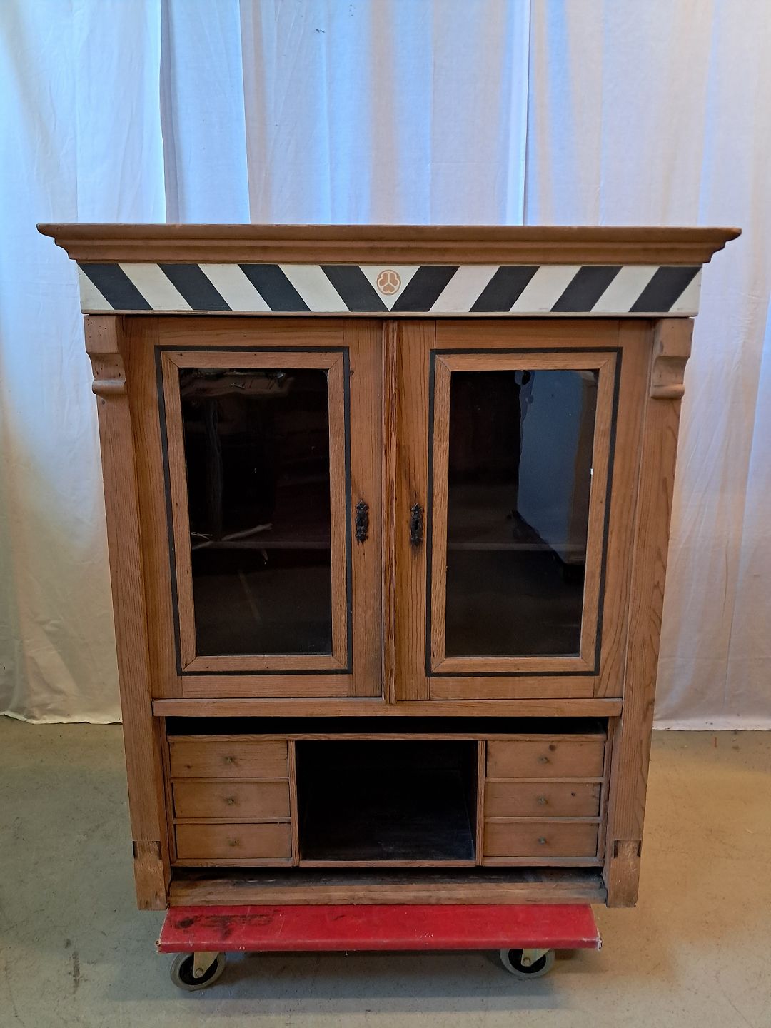 Skab i massivt fyrretræ, fra 1910erne.Det har brugsspor.
