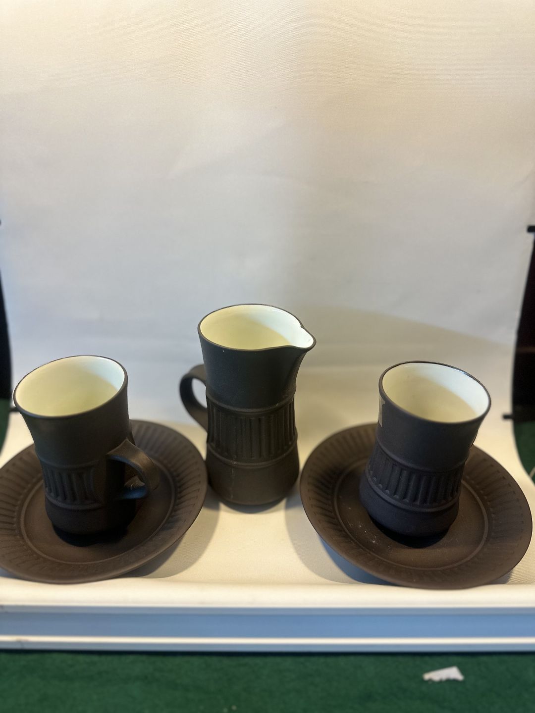 Stoneware tea set Jens Harald Quistgaard in the 50s 4 teacups with saucers 1 creamer nice and neat condition Dealer
