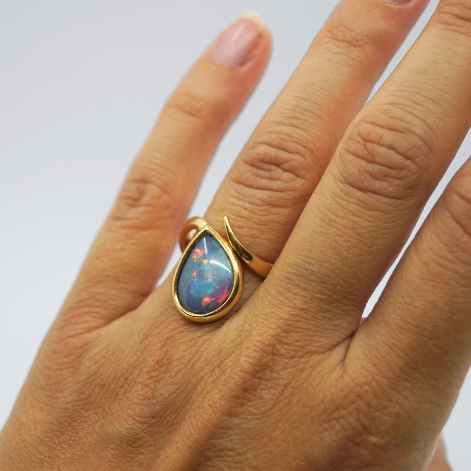 Georg Jensen; A ring in 18k gold set with a large opalOpal: 15 mm x 10 mm.