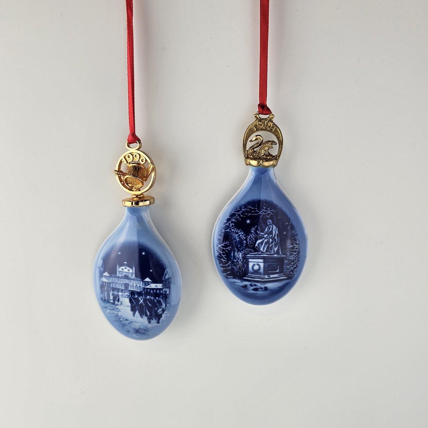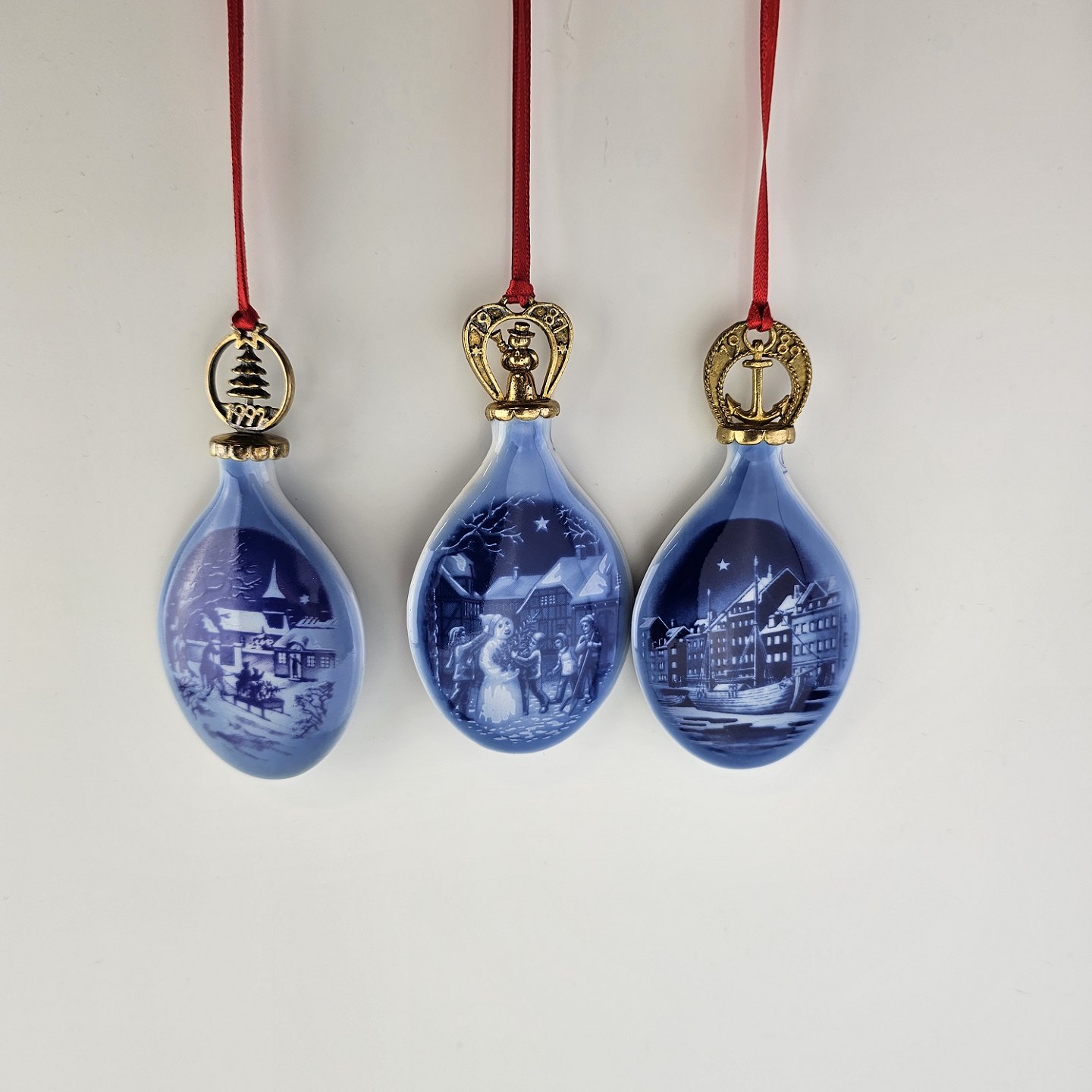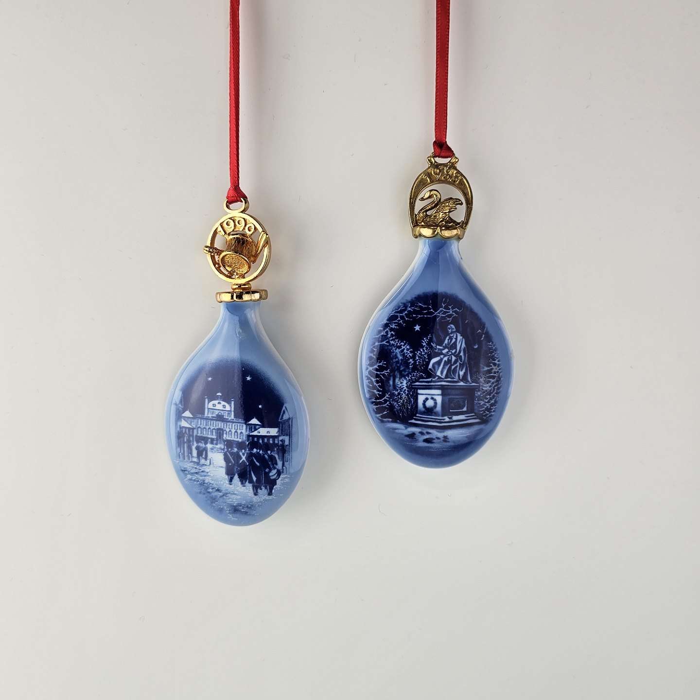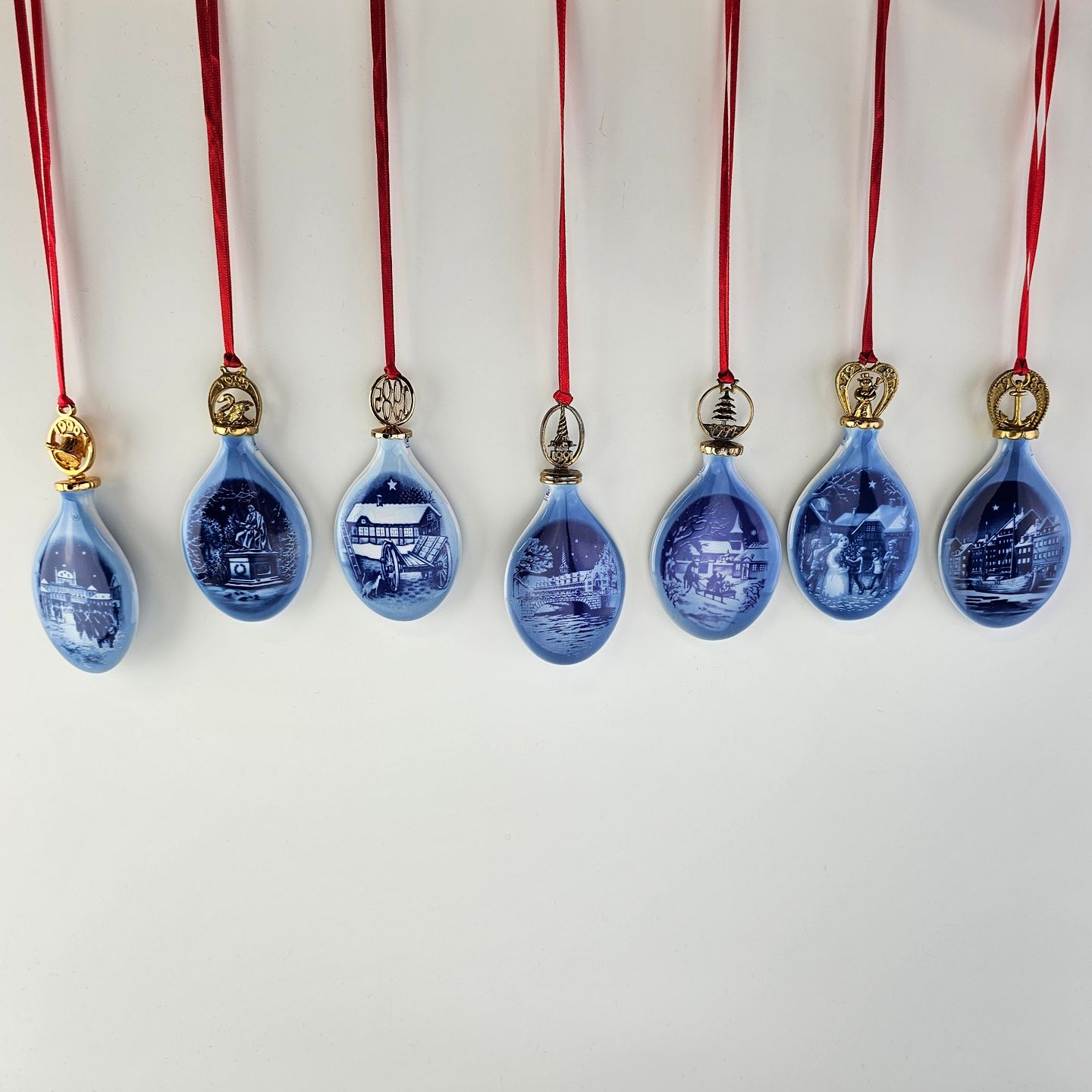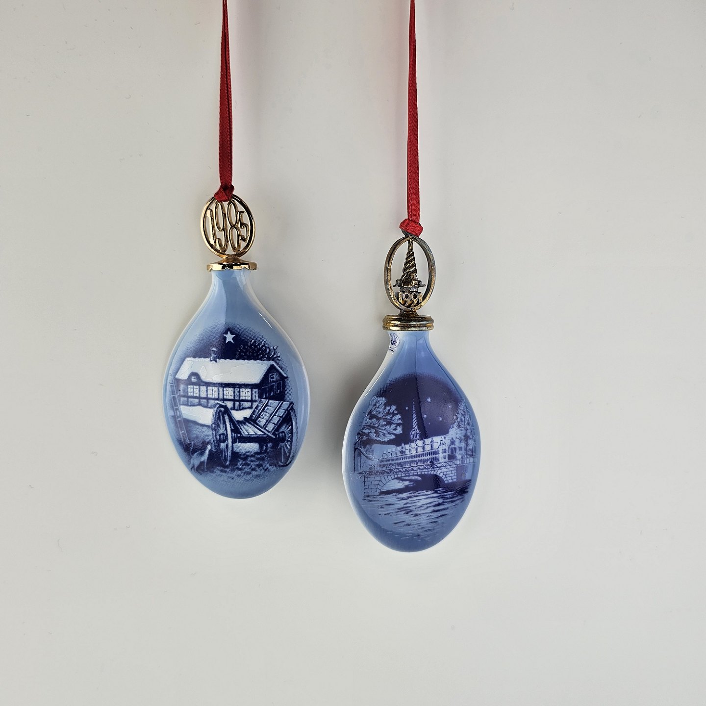 Juledråber i porcelæn med blåmalet motiv Producent Bing & Grøndahl