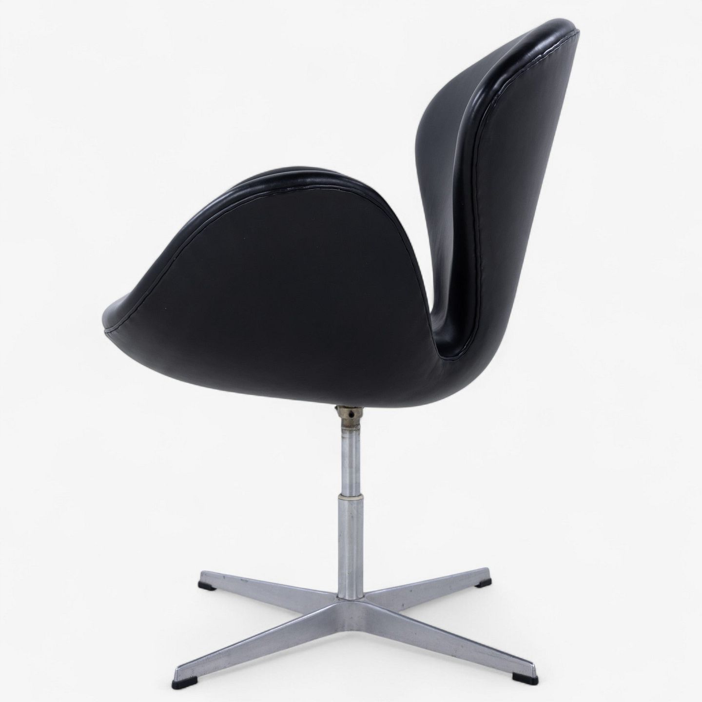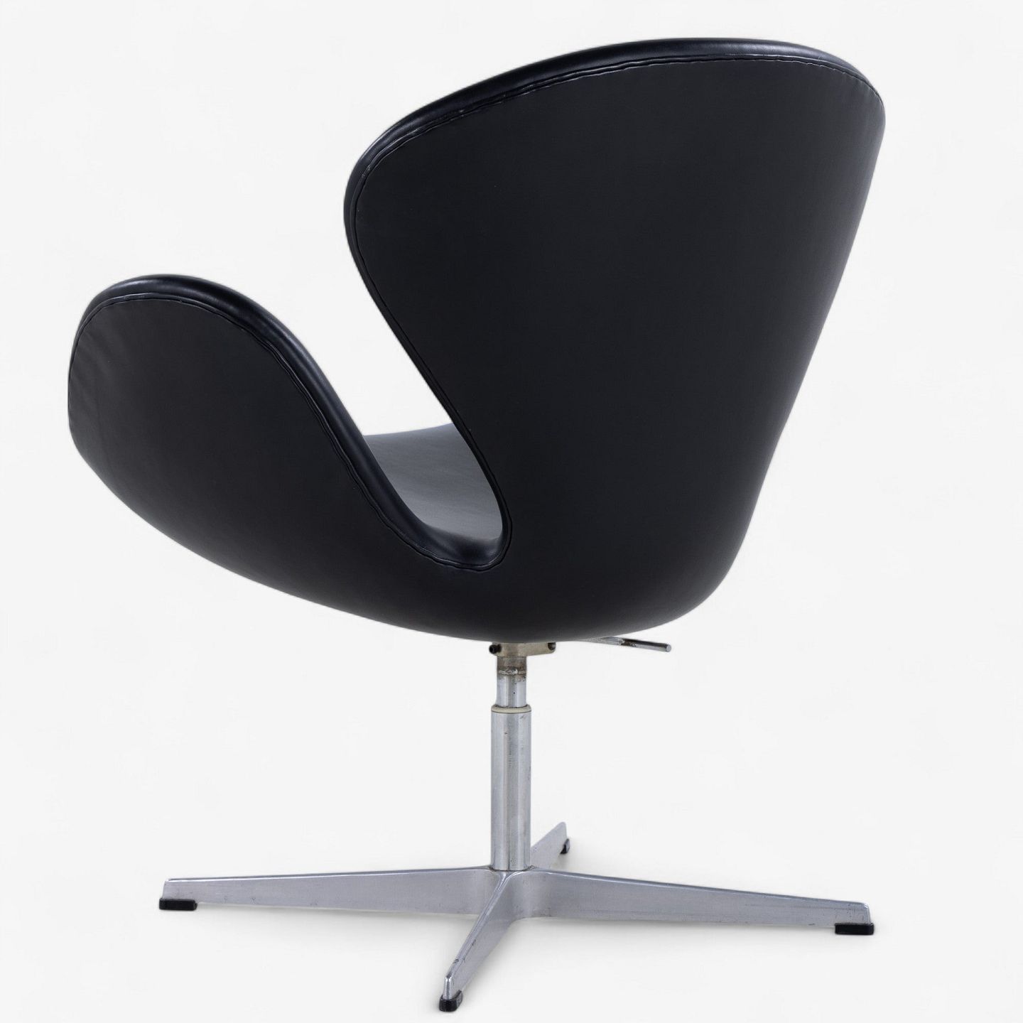 AJ 3320 - 'Swan' armchair in black leather with new base.