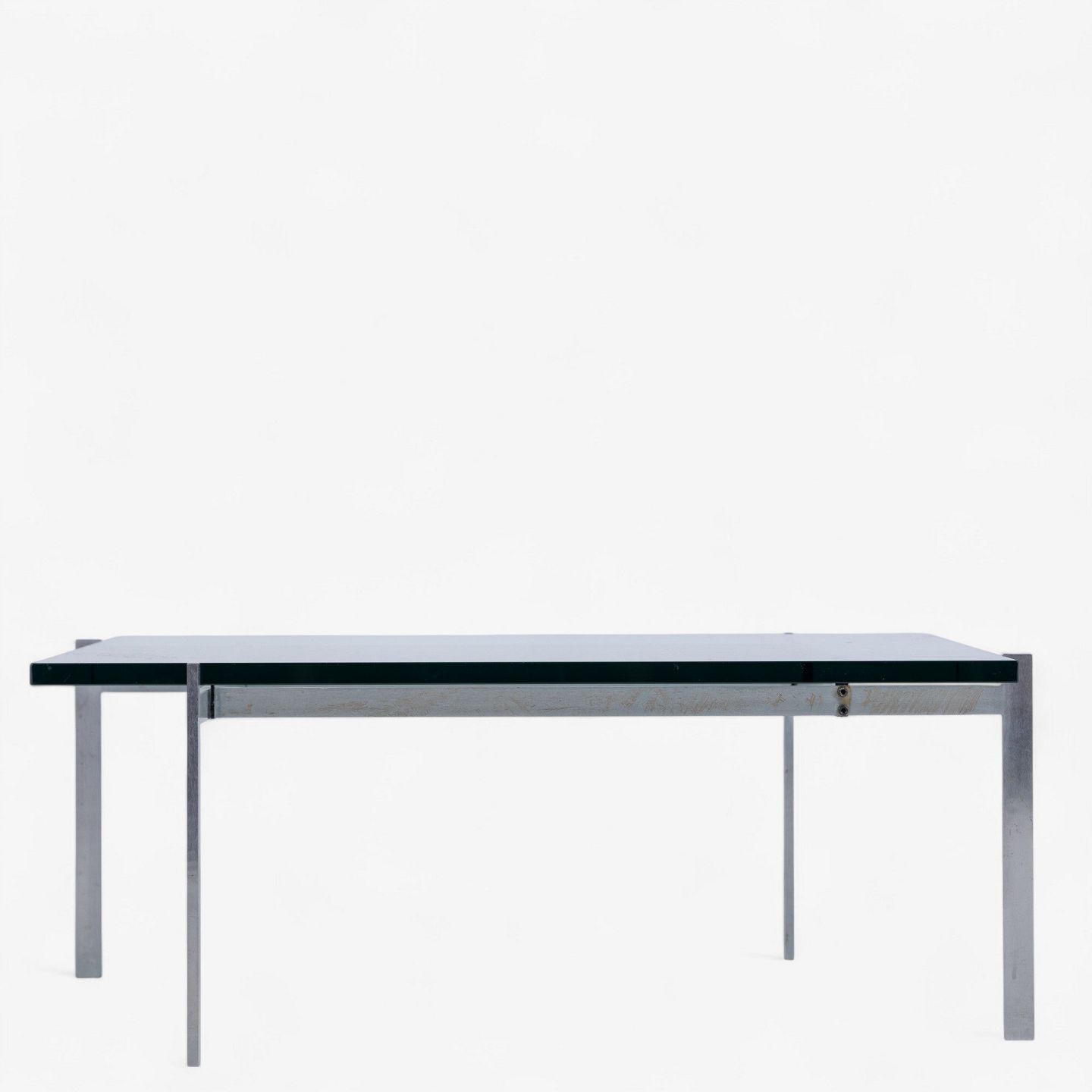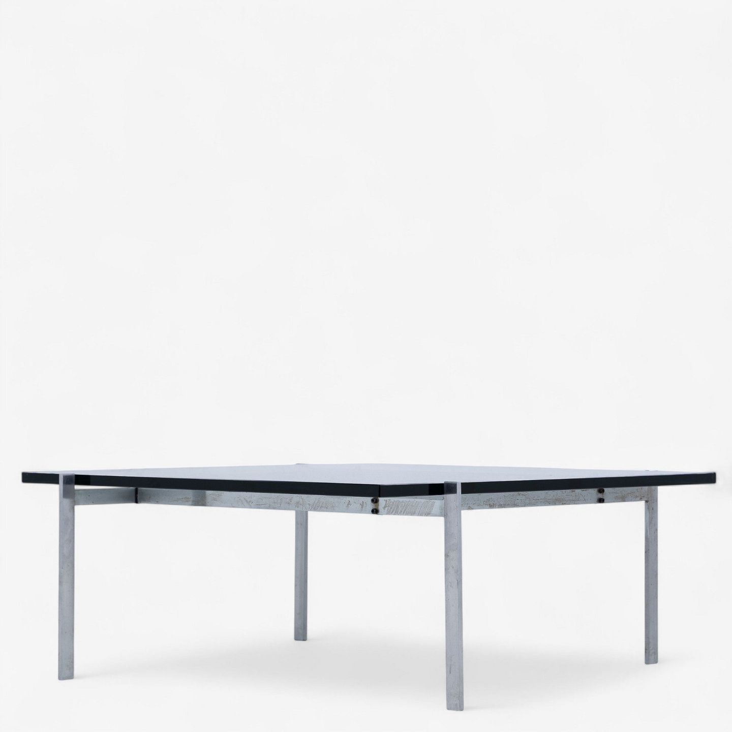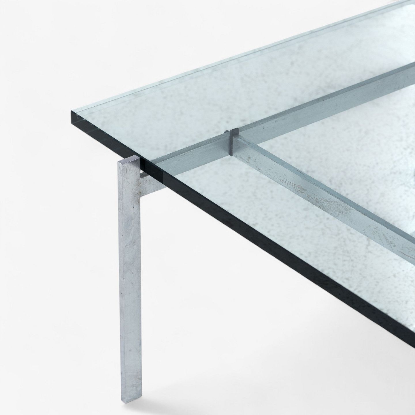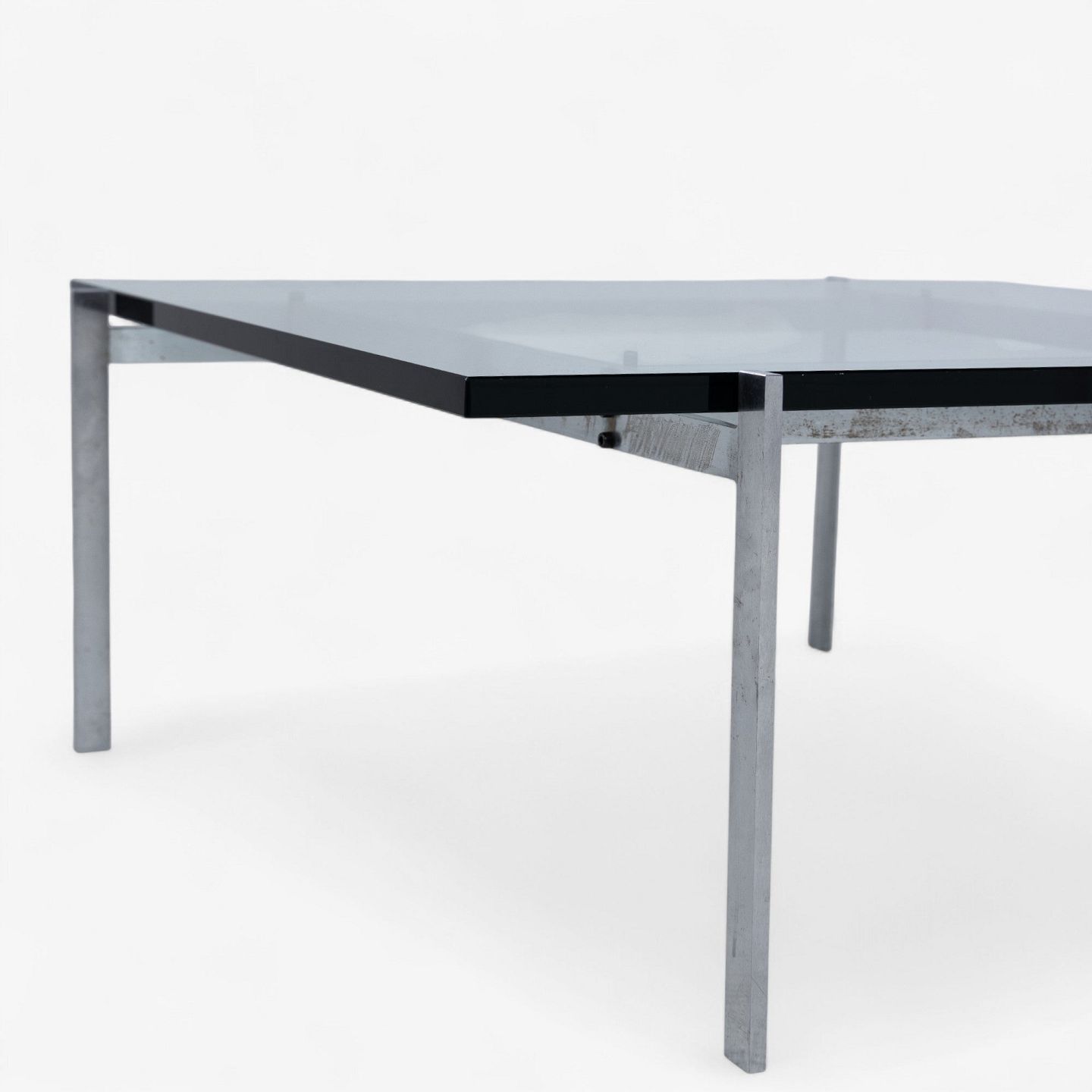 PK 61 - Coffee table with glass top on steel frame. Manufacturer's mark.