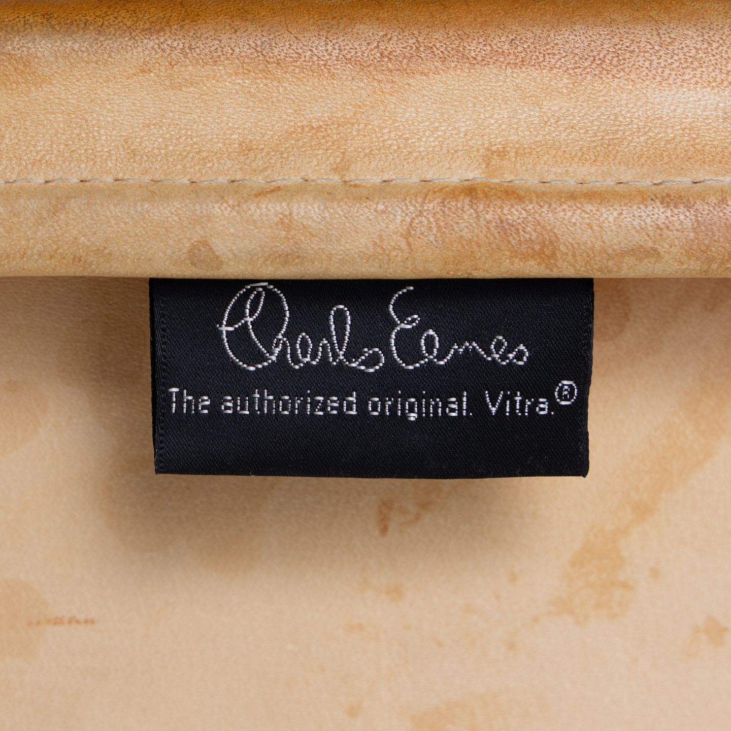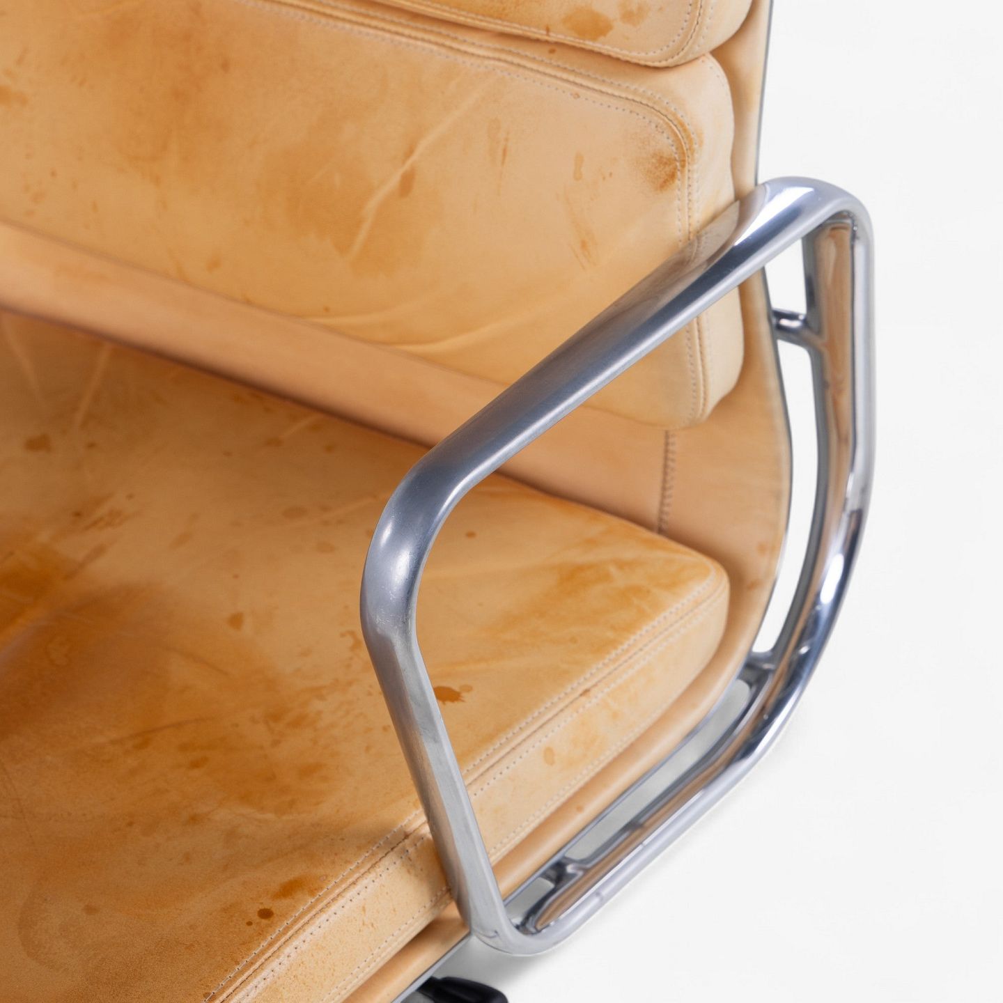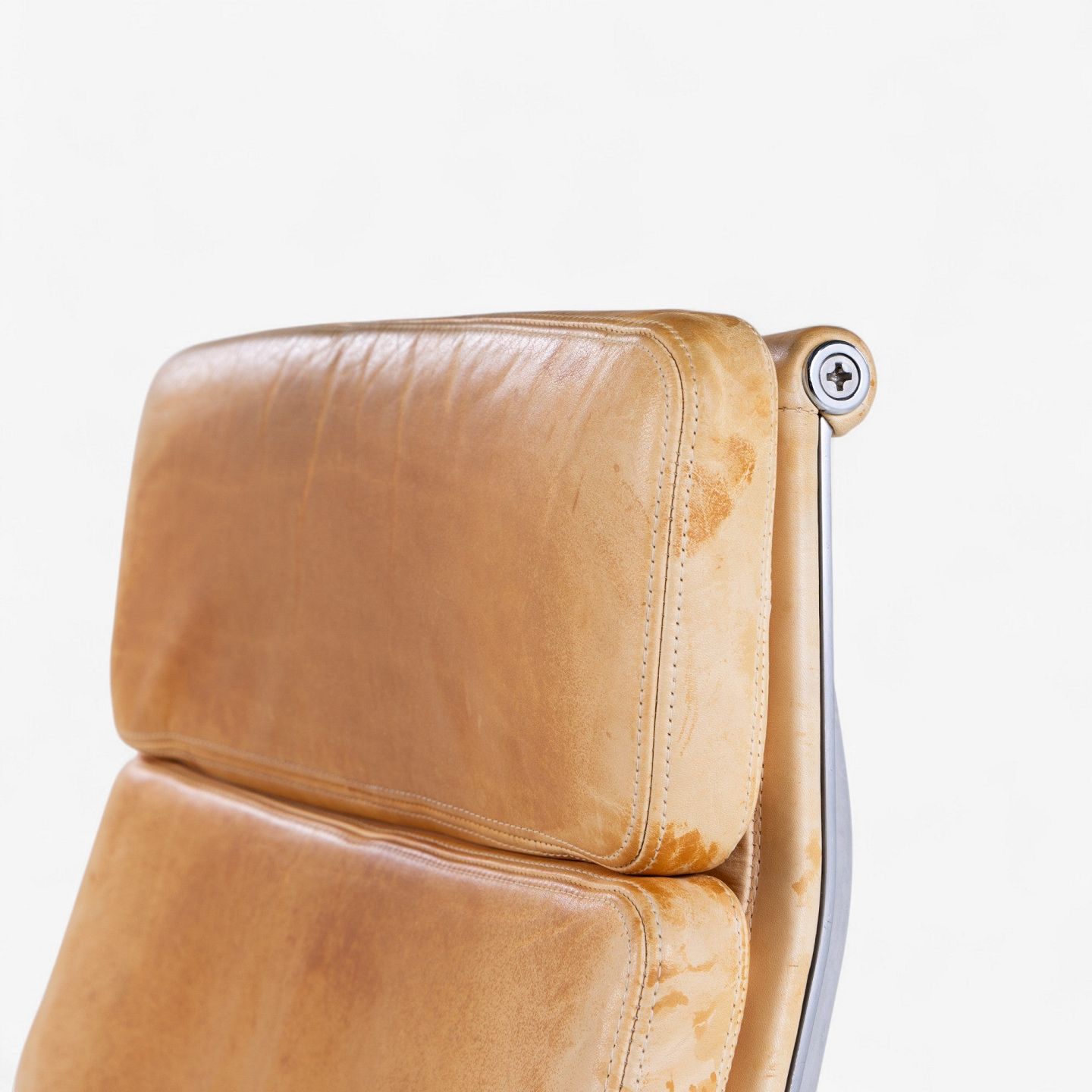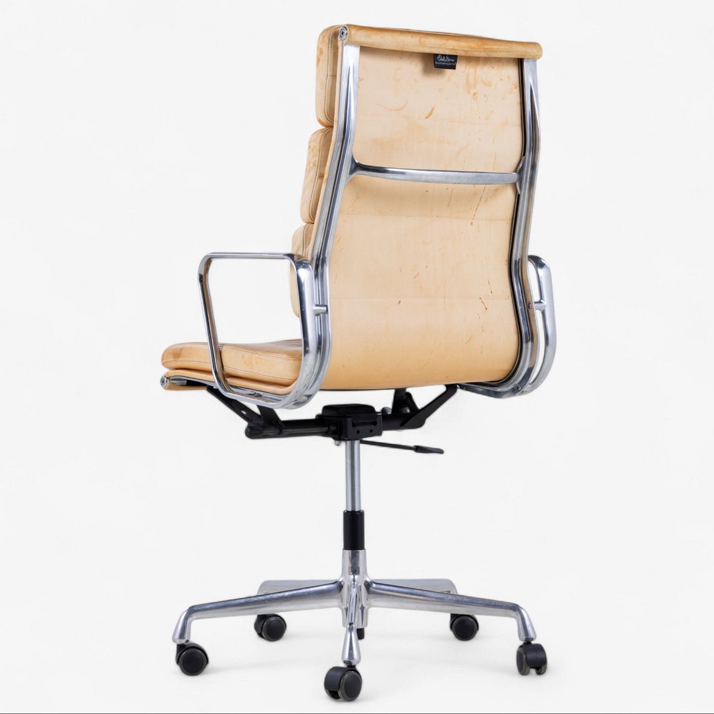 EA 219 - High-back office chair in patinated natural leather on a steel frame. Manufacturer's mark.