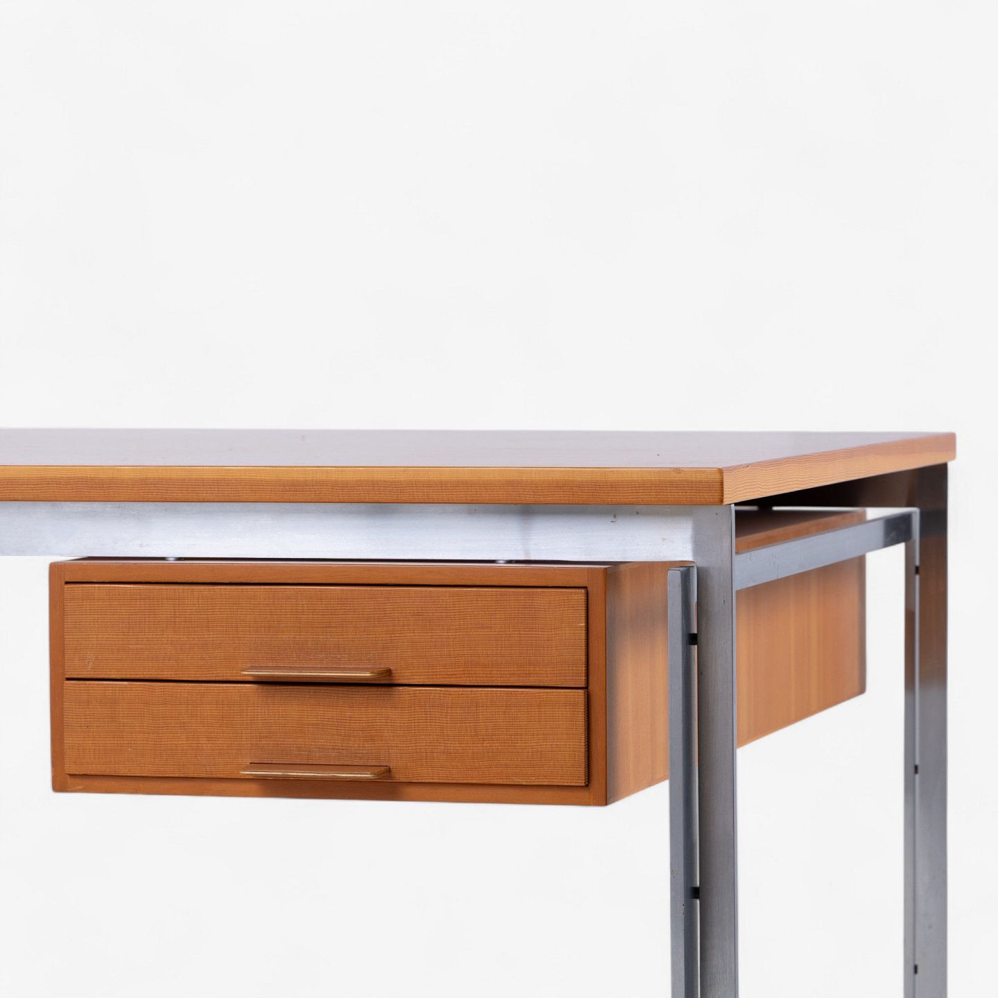 PK 55 - Work table/desk with top and drawer module in Oregon pine and steel frame. From 1985. Manufacturer's mark.