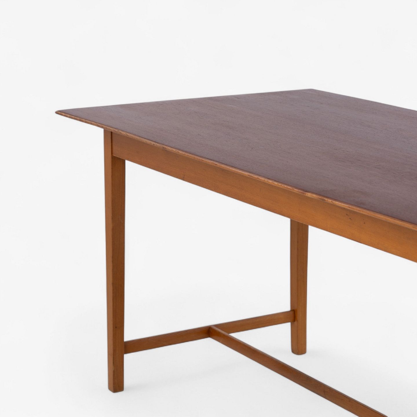 Work table with elm frame and teak top with fluted bottom edge. Made in the 1950s.