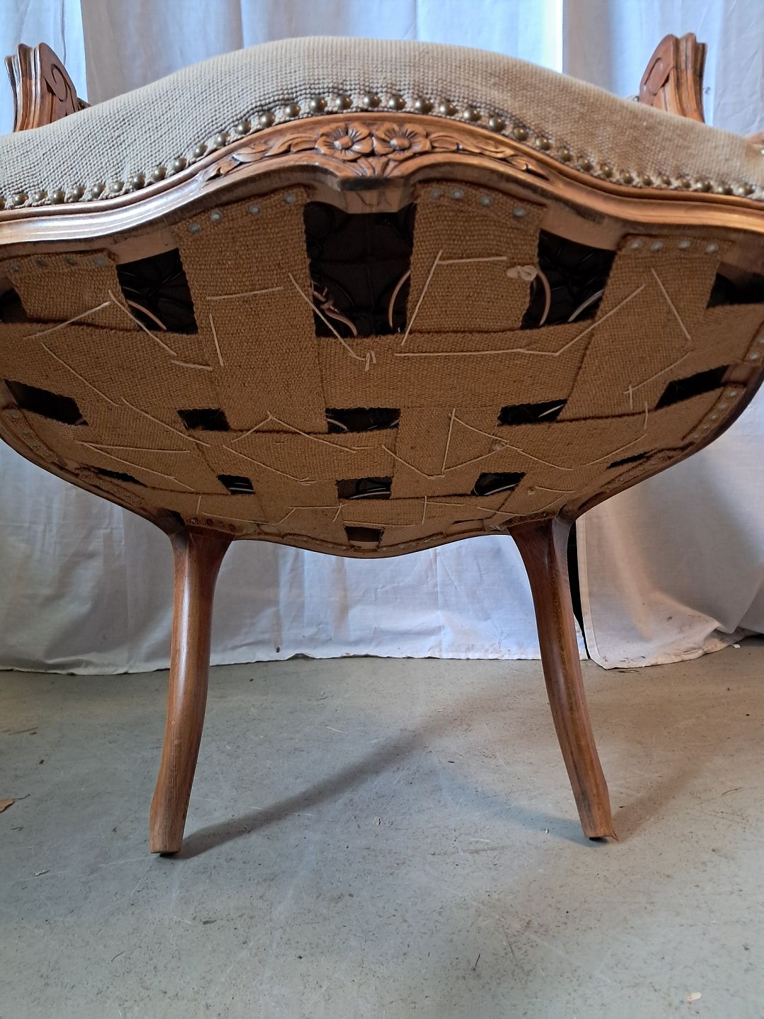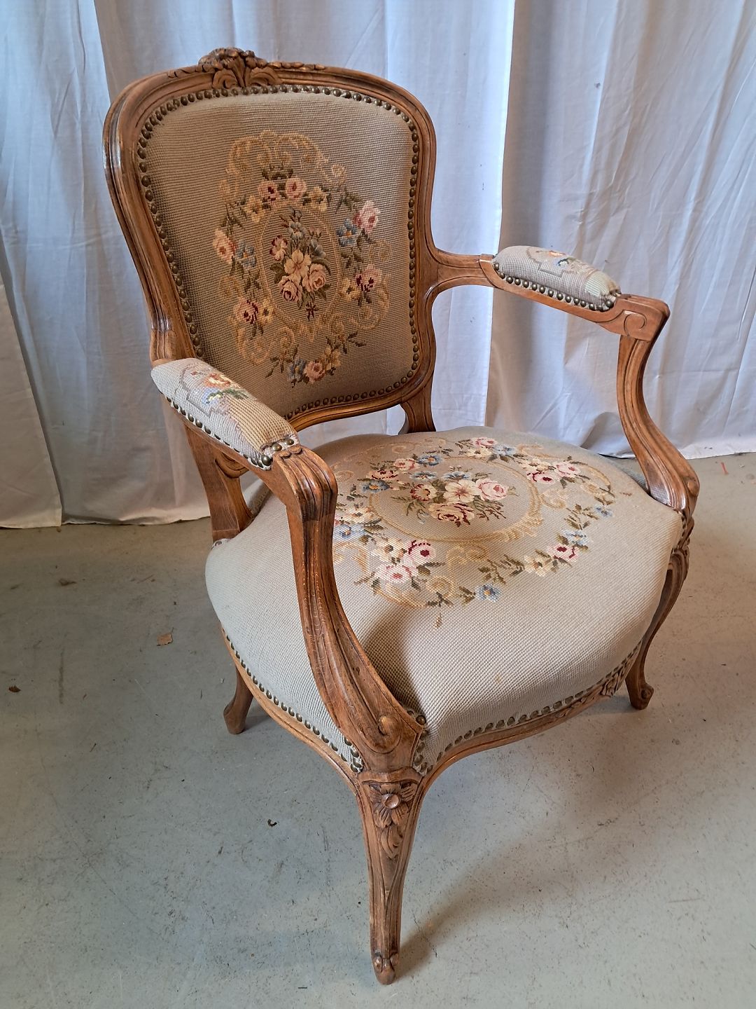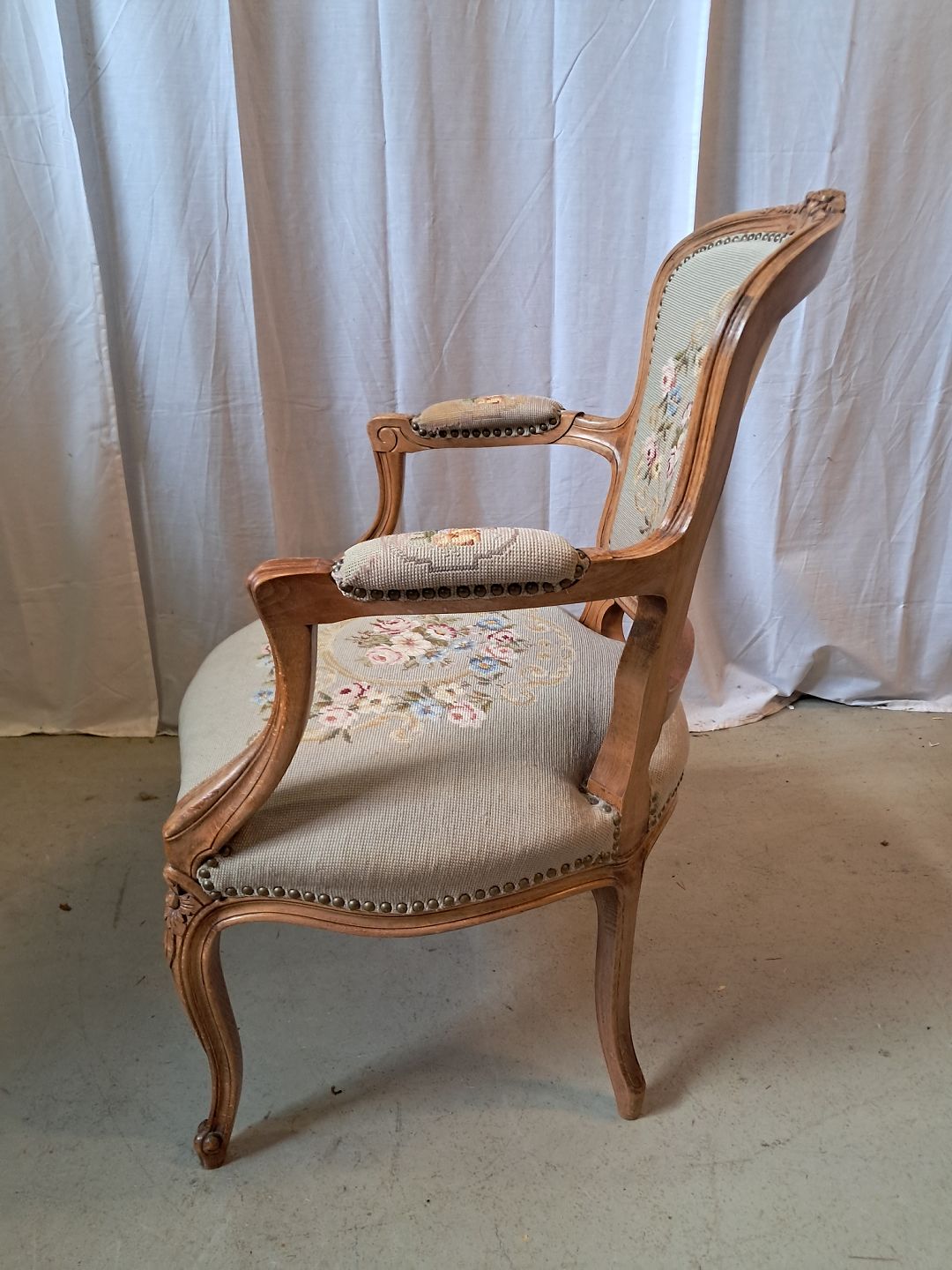 Armstol i massivt bøgetræ, fra 1950erne.Den har brugsspor.