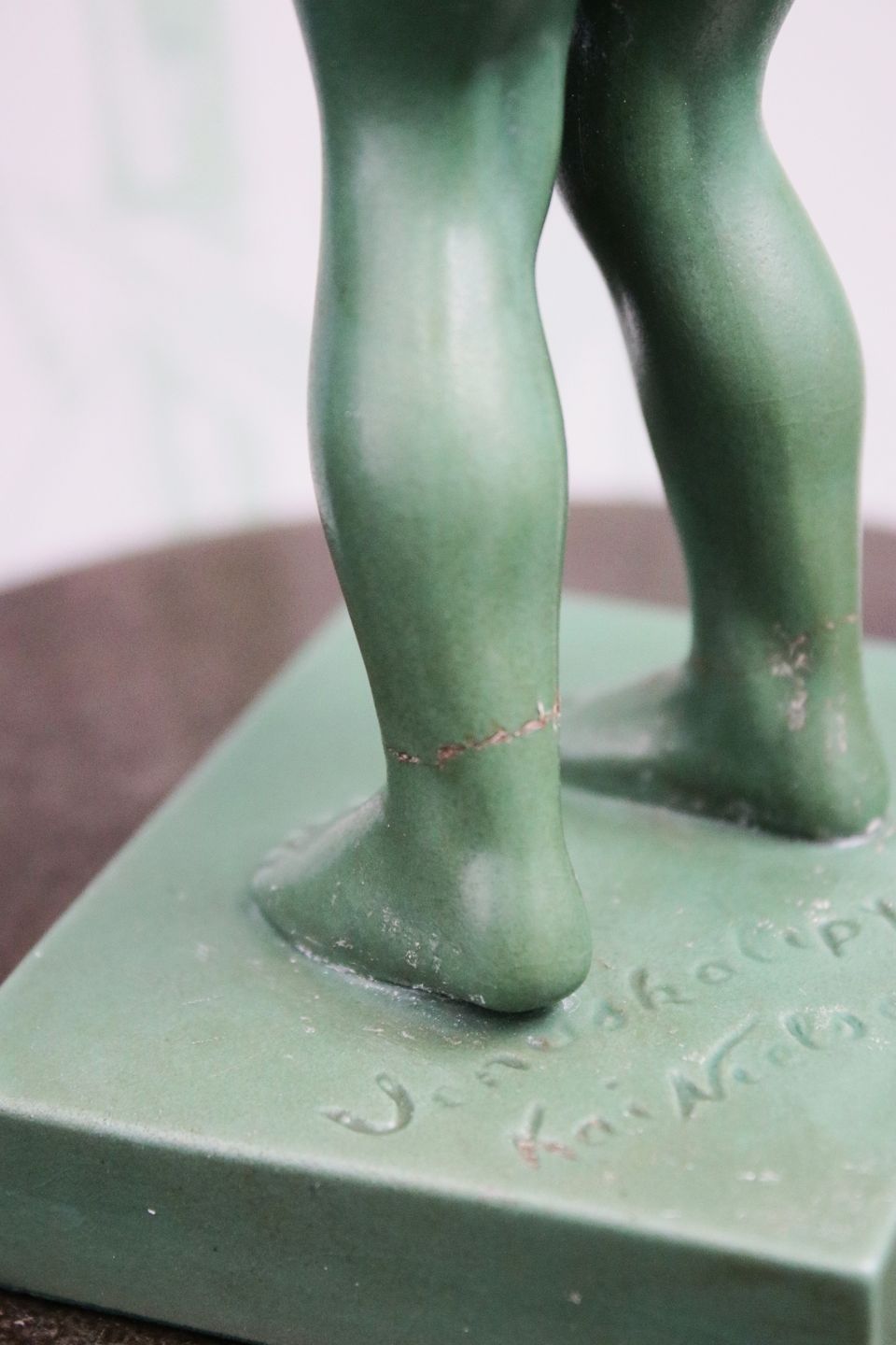 Kai Nielsen Venus figur i mørkegrøn glaseret terracotta."Venus Glypogos". fra P.Ibsen , sign. Kai Nielsen. 888 Denmark.