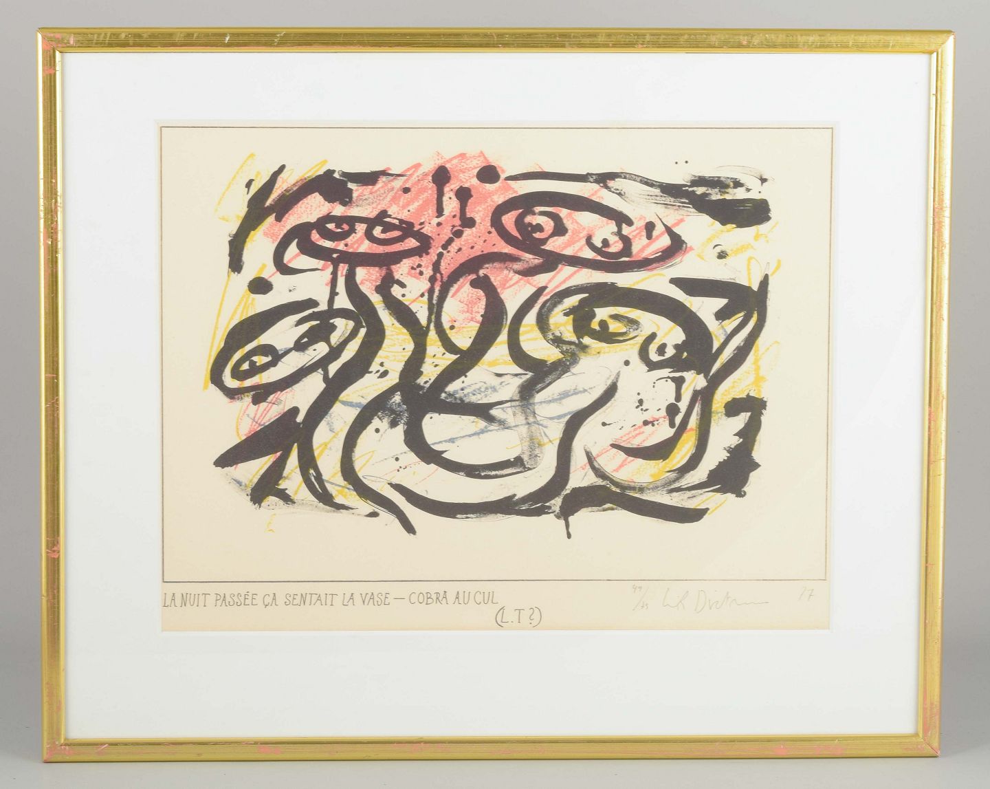 A characteristic lithograph by Erik Dietman, created in 1977 and produced in an edition of 75. The work is typical of Dietman’s spontaneous, humorous, and organic visual language, often engaging in dialogue with the legacy of the Cobra movement.