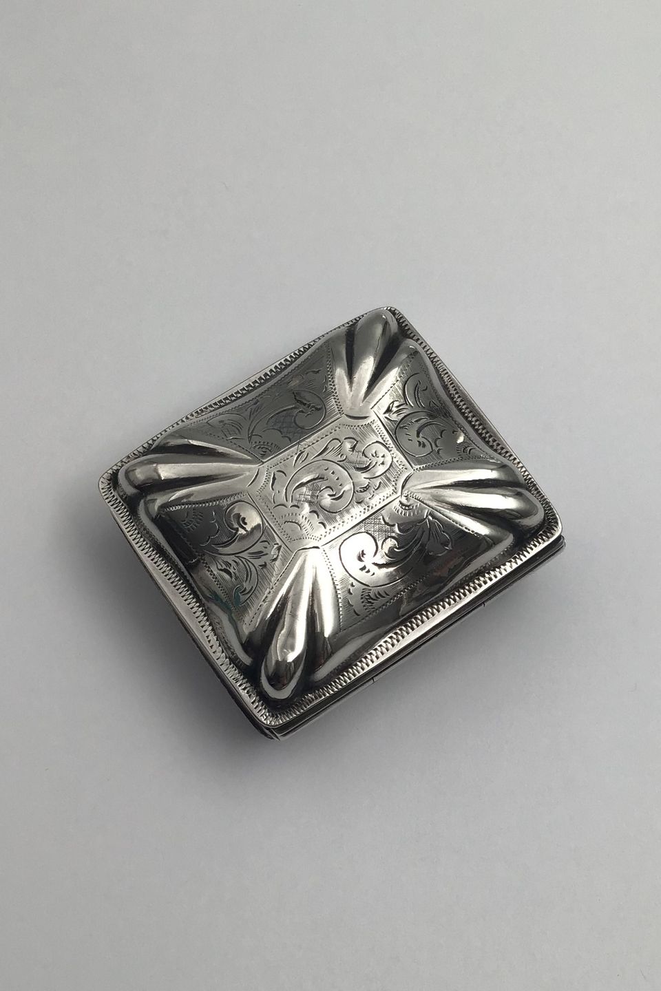 English Sterling Silver Snuff Box (1857)Measures 5 cm x 4.5 cm x 2.5 cm (1.96 inch x 1.77 inch x 0.98 inch) Weight 27.5 gr (0.97oz)