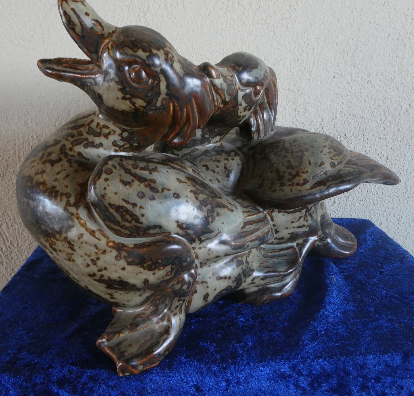 Royal Copenhagen stoneware figurine No 20281 of 1st quality. Royal Copenhagen stoneware figurines, Denmark.Two ducks. A large and beautiful figurine in a fine condition.